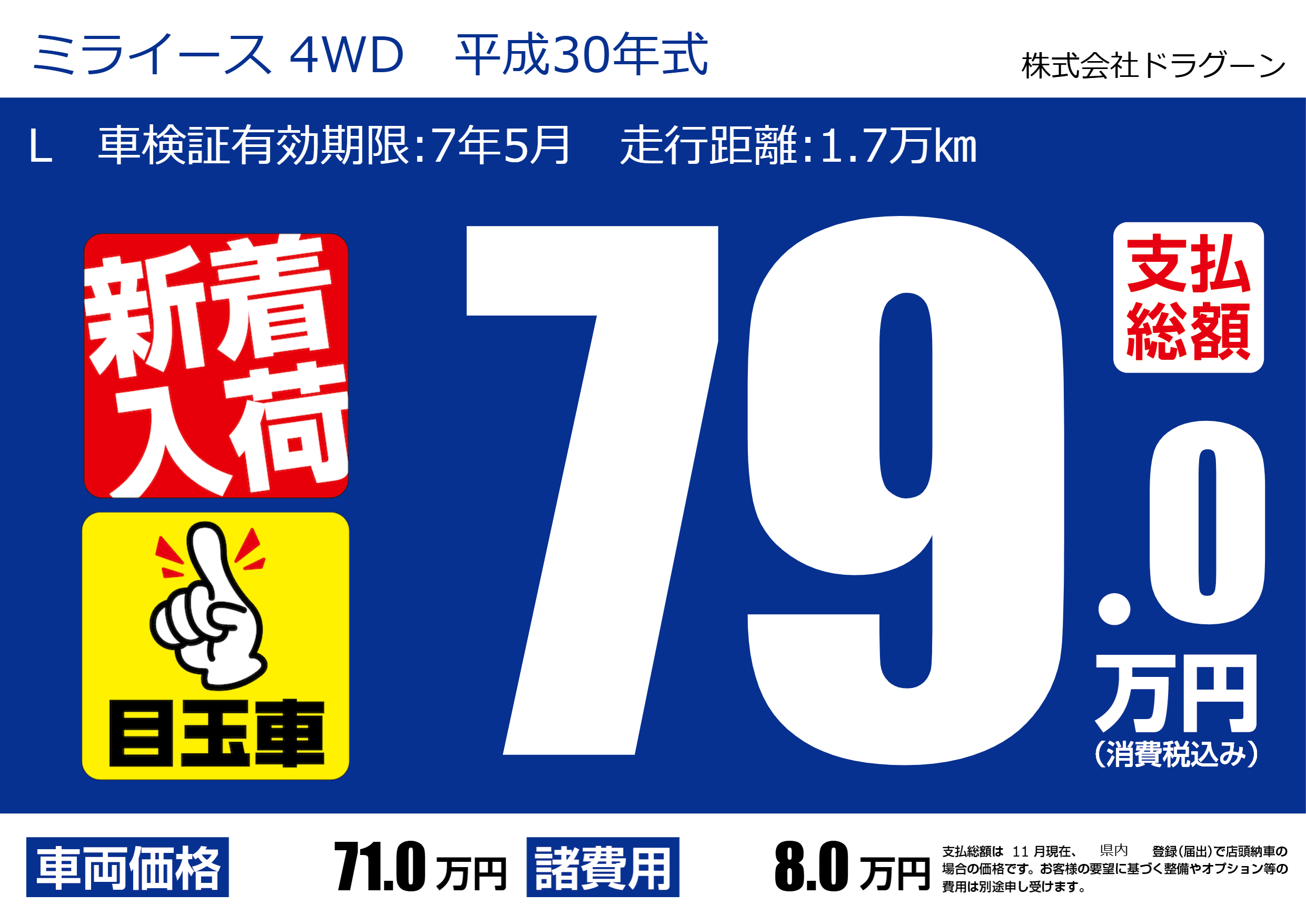 L 車検証有効期限:7年5月 走行距離:1.7万㎞ |