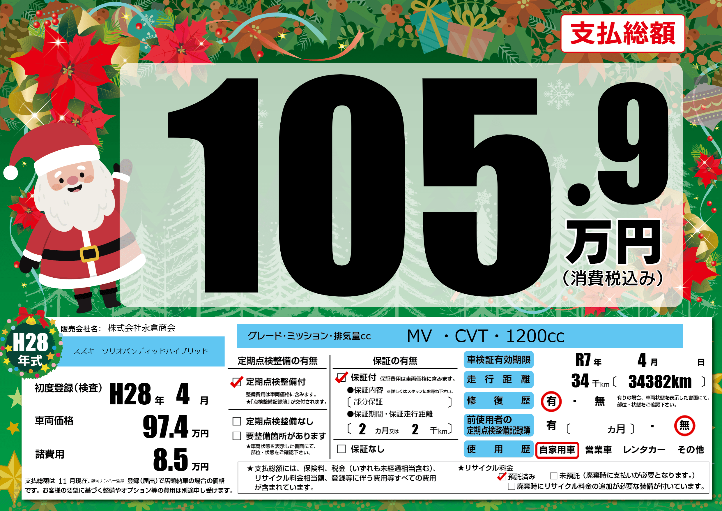 | 車名 | スズキ ソリオバンディッドハイブリッド | グレード ミッション 排気量 |