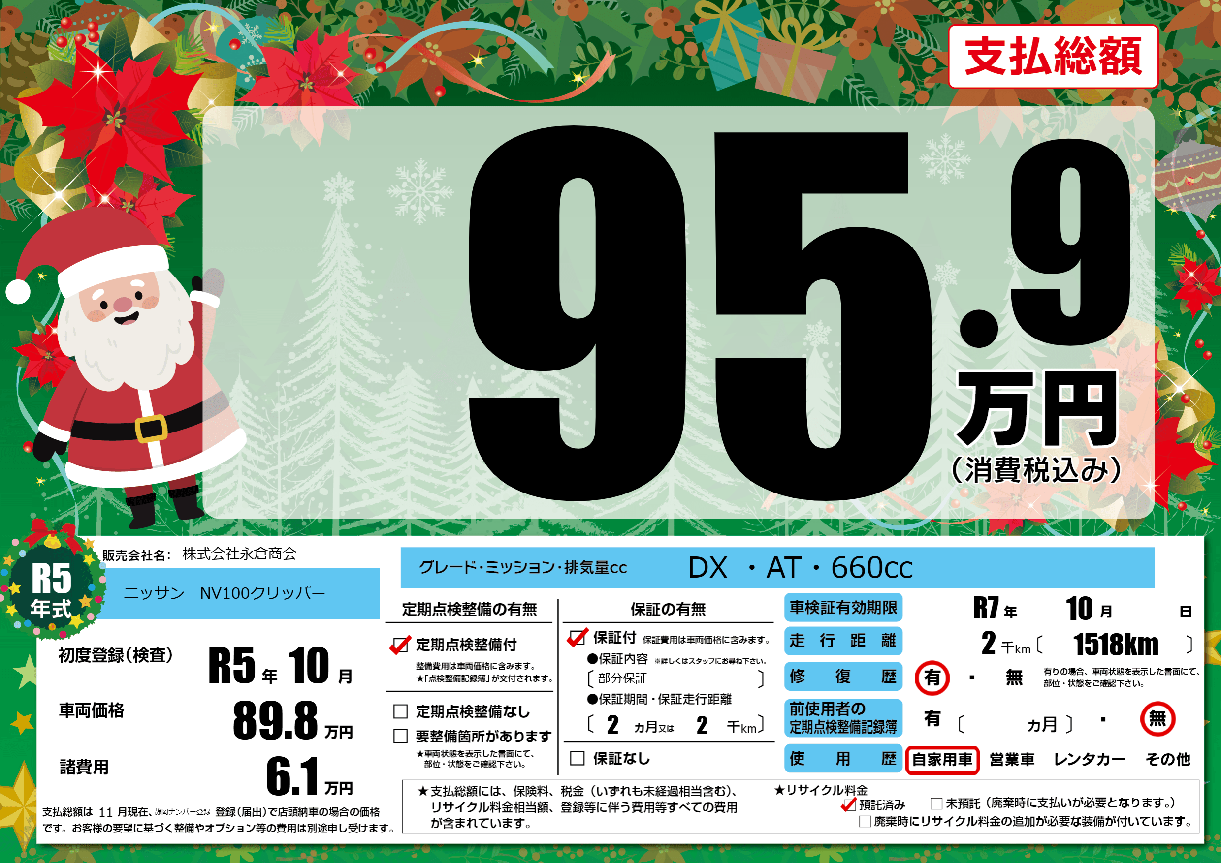 | 走行キロ | 0.2万km | 初年度登録 | R5年10月 |