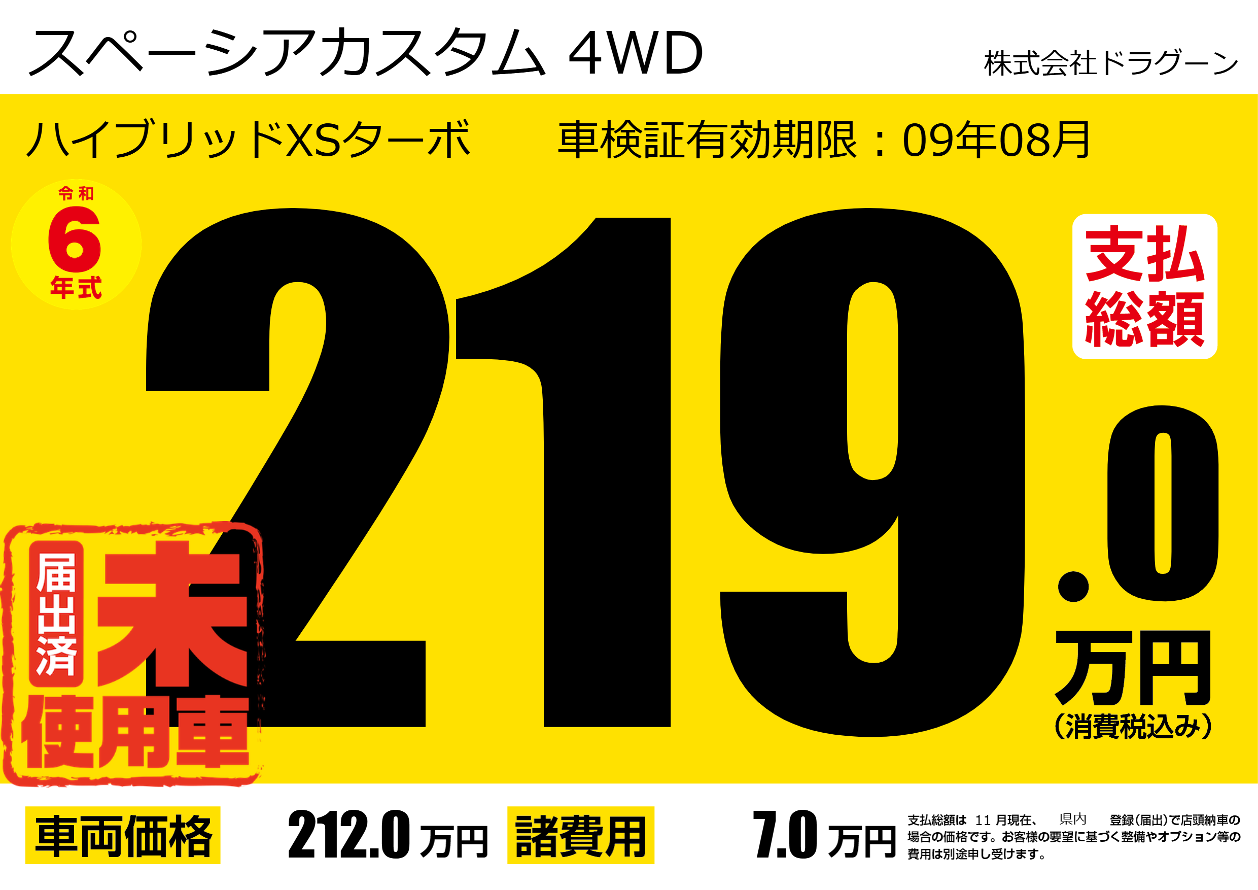 | 車名 | スペーシアカスタム 4WD | グレード ミッション 排気量 |