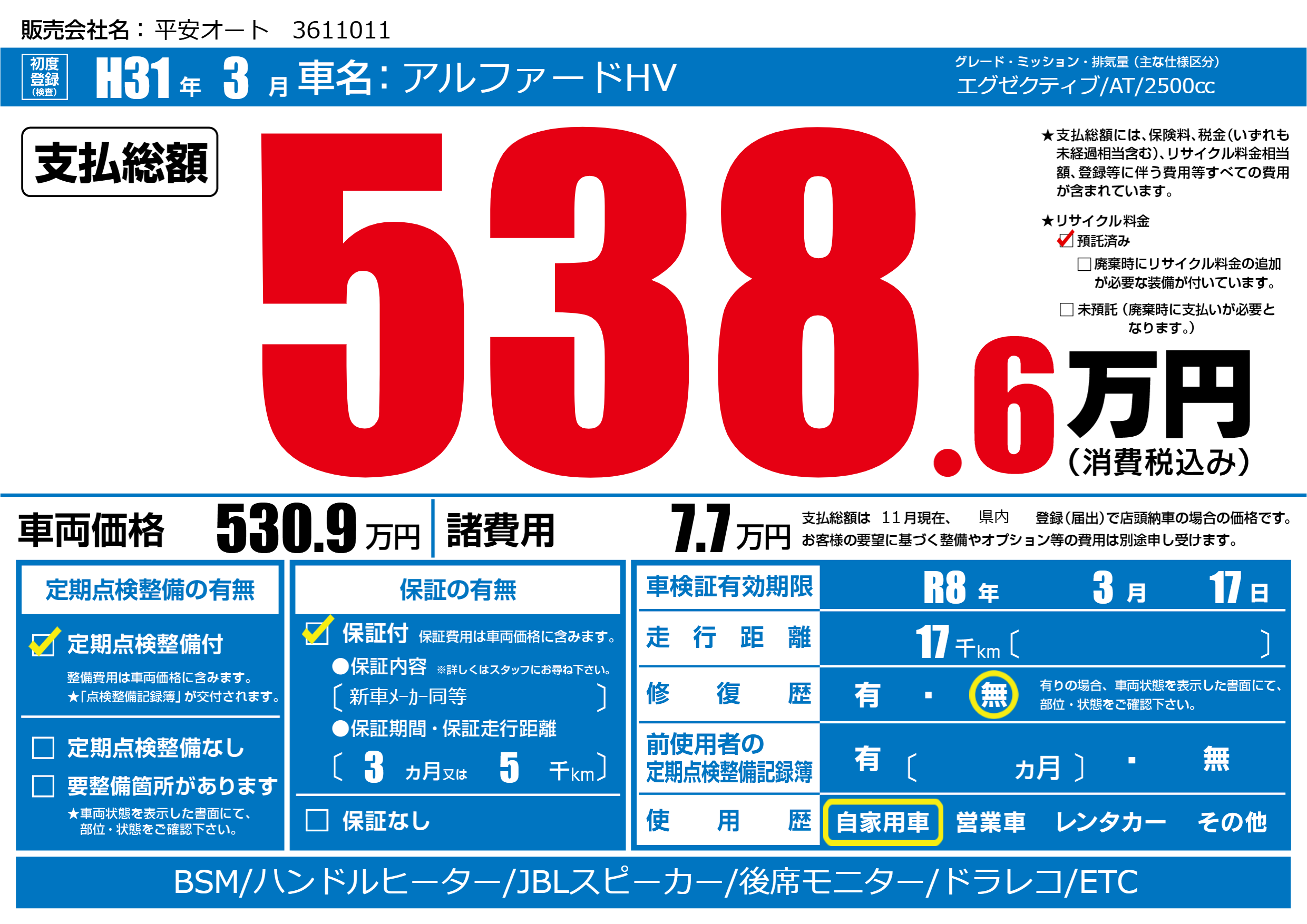 なし | 車検制限 | R8年3月17月 |