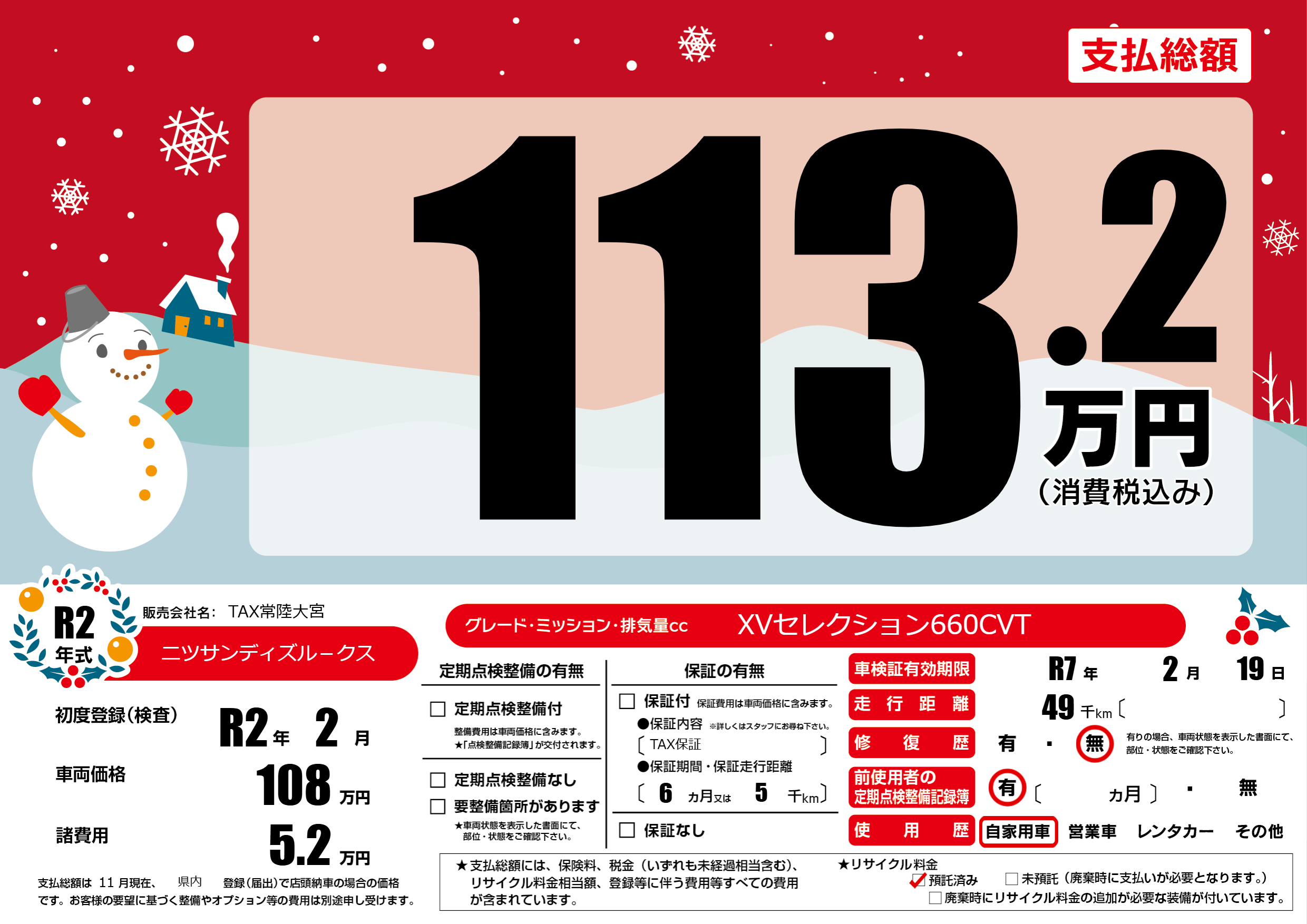 | 走行キロ | 4.9万km | 初年度登録 | R2年2月 |
