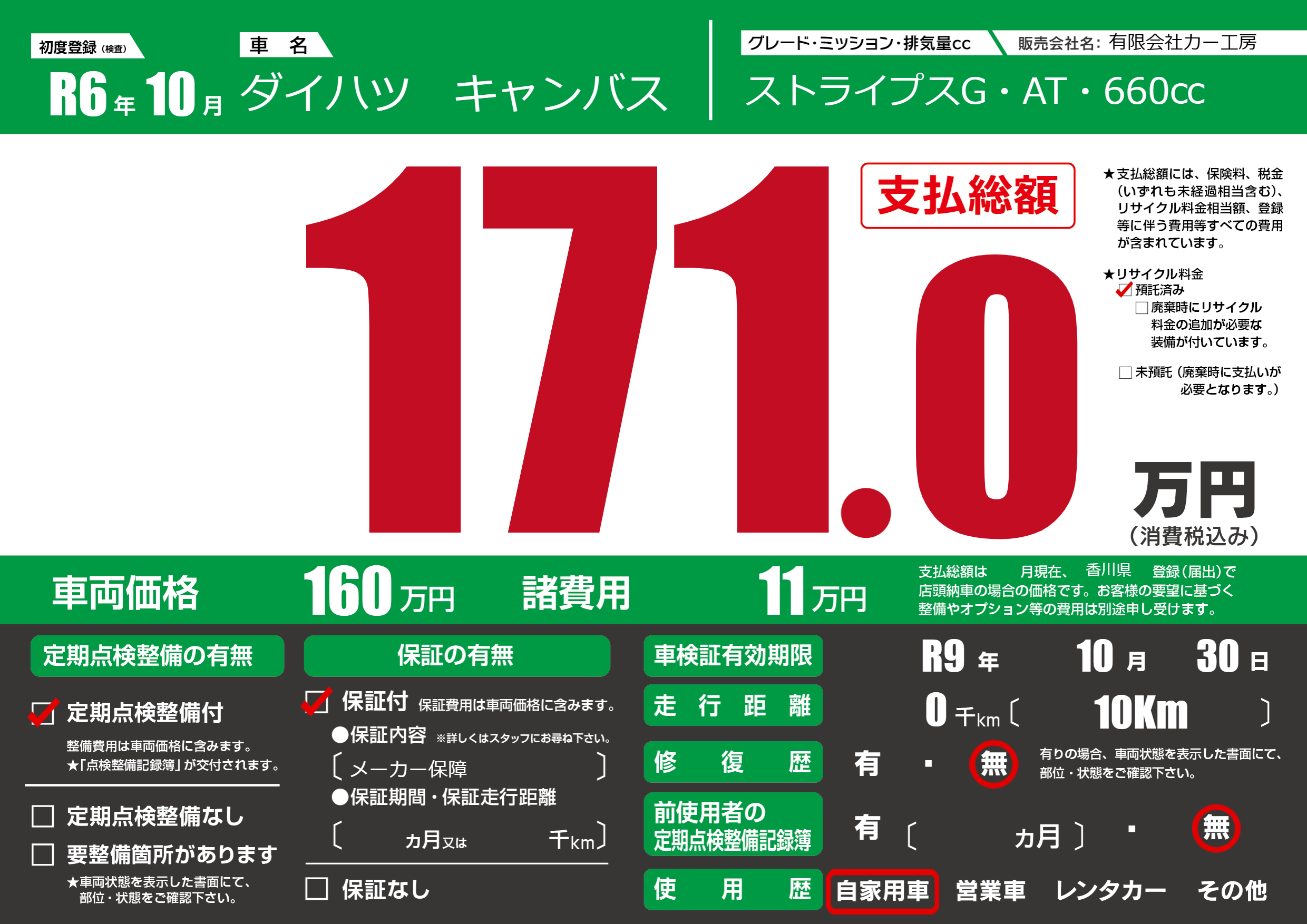 | 走行キロ | - | 初年度登録 | R6年10月 |
