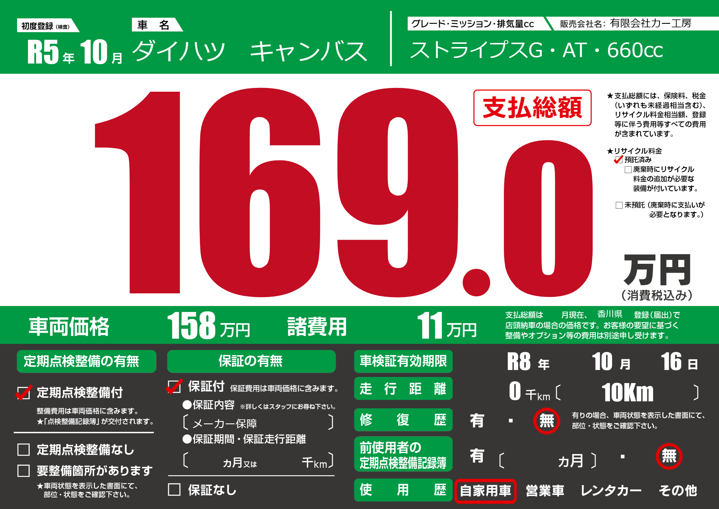 | 走行キロ | - | 初年度登録 | R5年10月 |