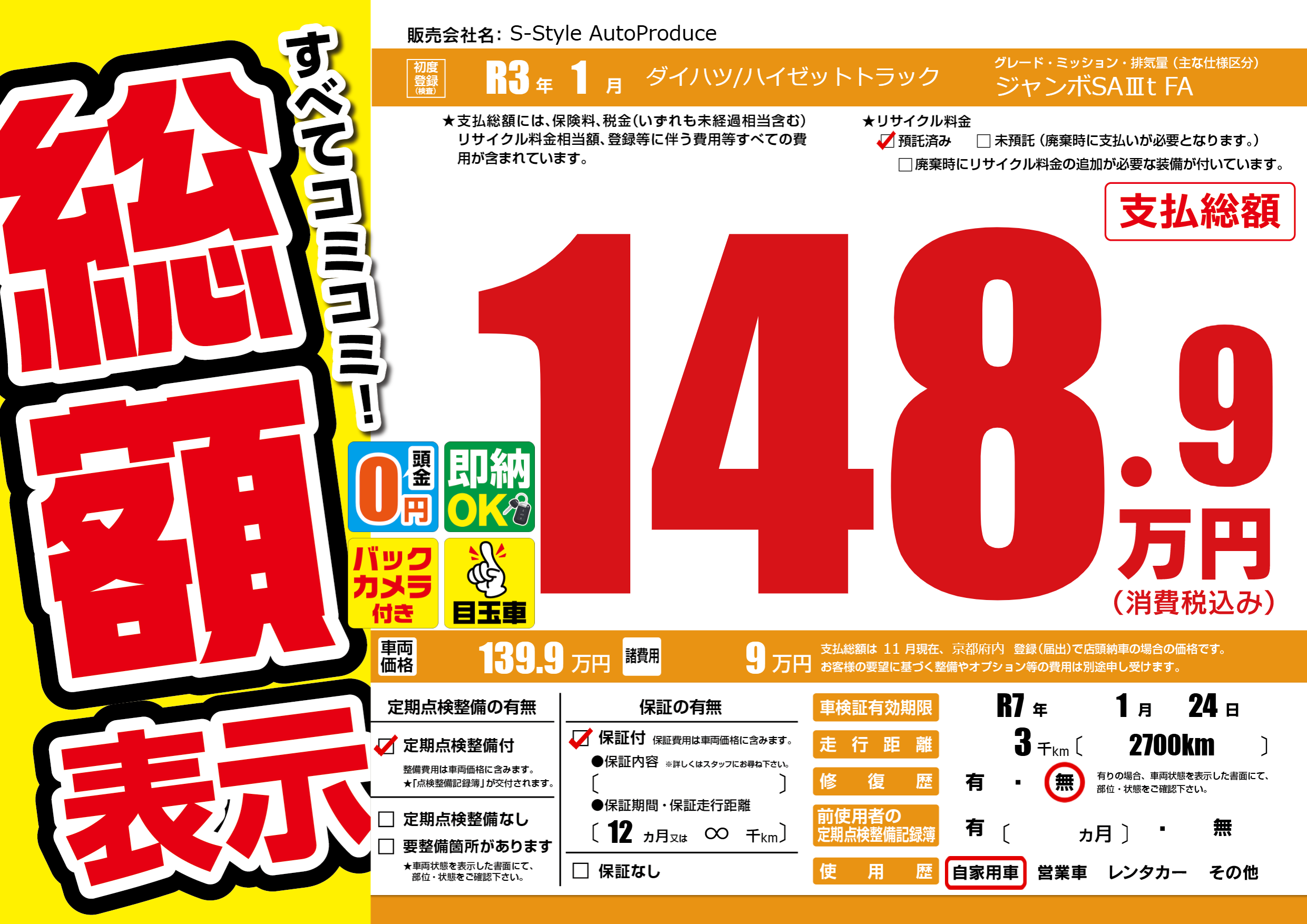 なし | 車検制限 | R7年1月24月 |