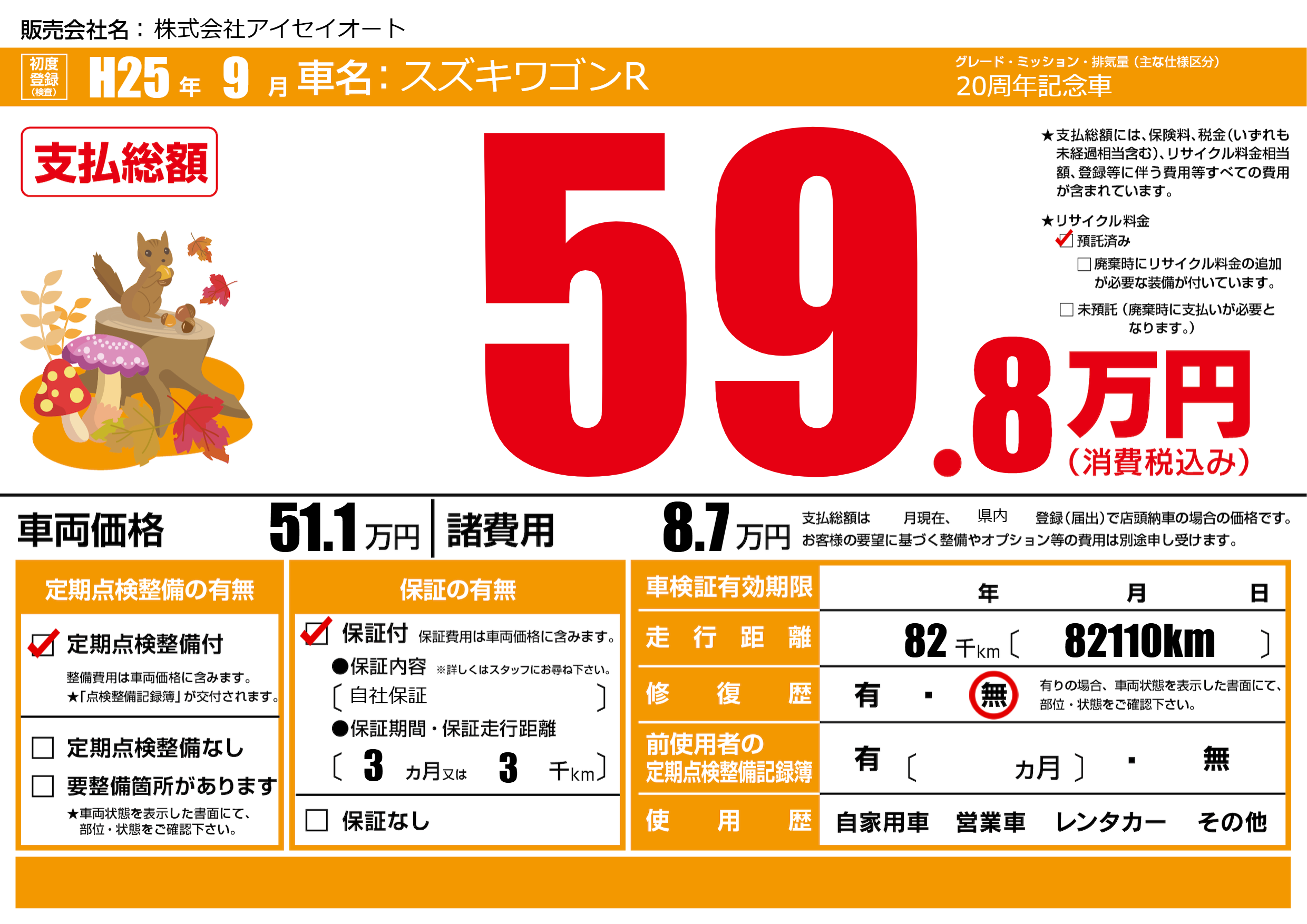| 走行キロ | 8.2万km | ||