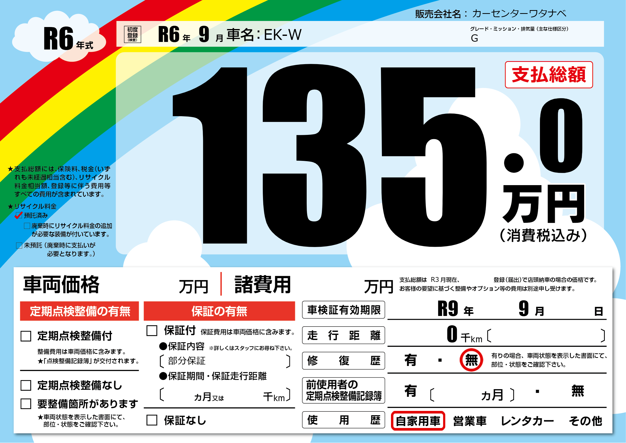 | 車名 | EK-W | グレード ミッション 排気量 |