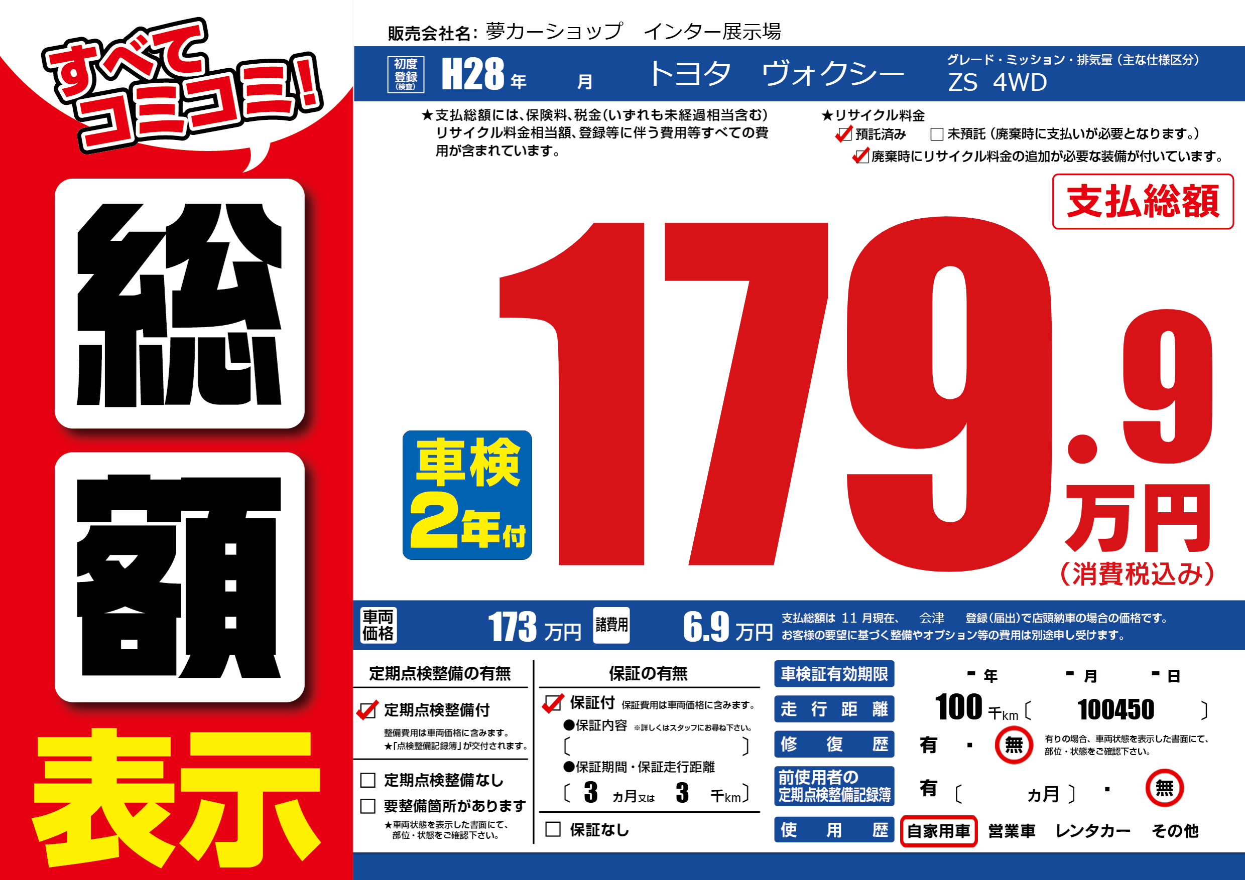 | 車名 | トヨタ ヴォクシー | グレード ミッション 排気量 |
