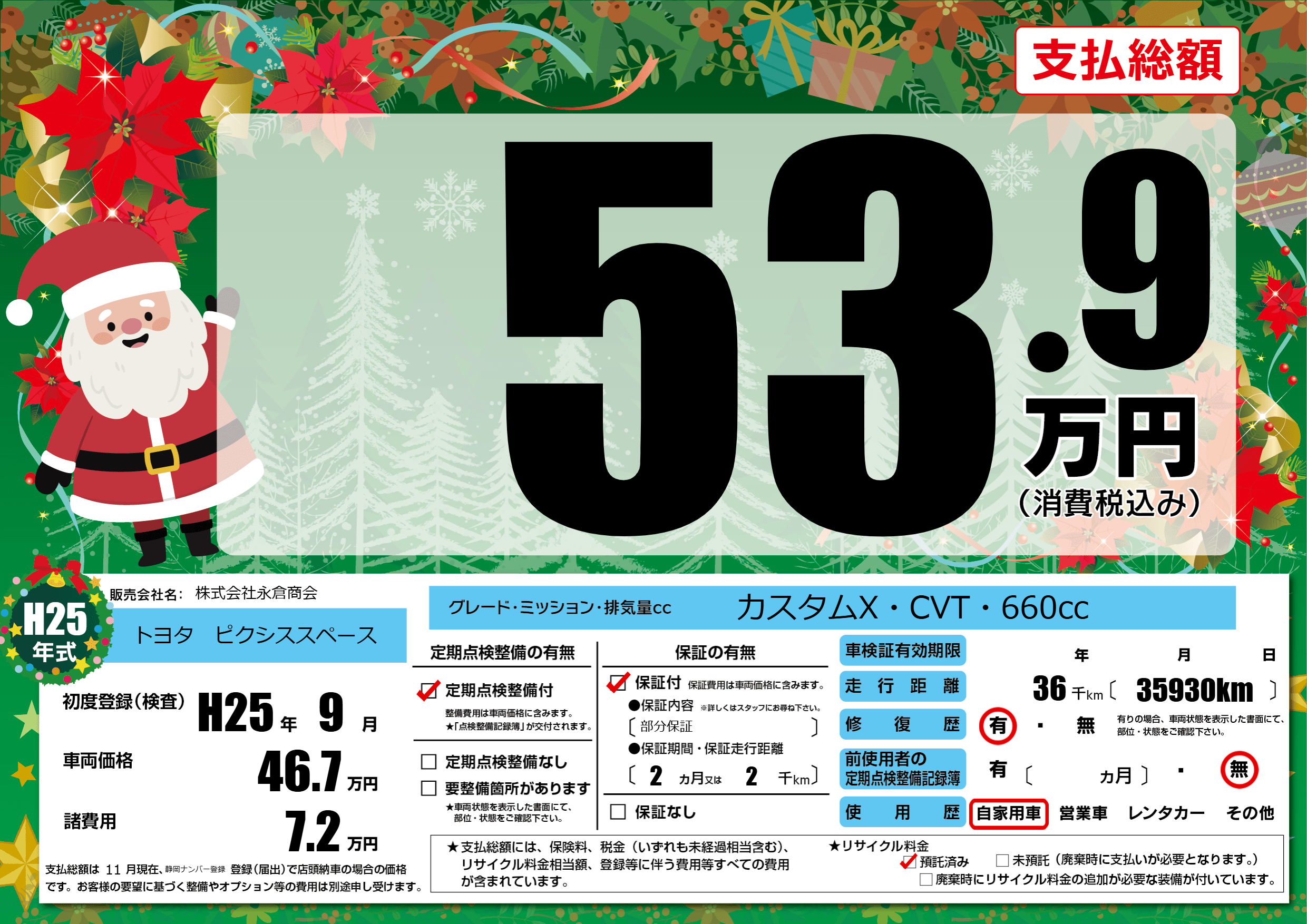 初年度登録 H25年9月