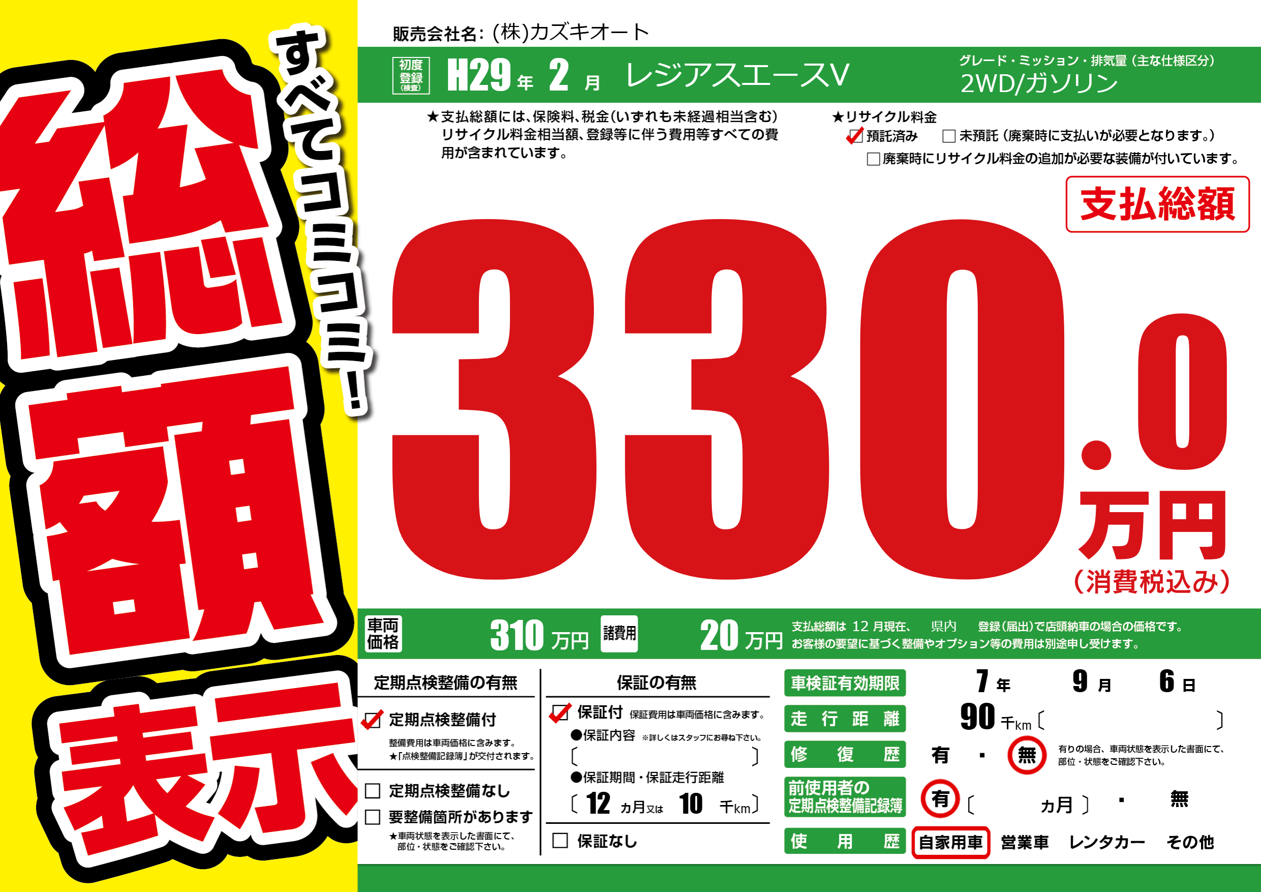 | 走行キロ | 9万km | 初年度登録 | H29年2月 |