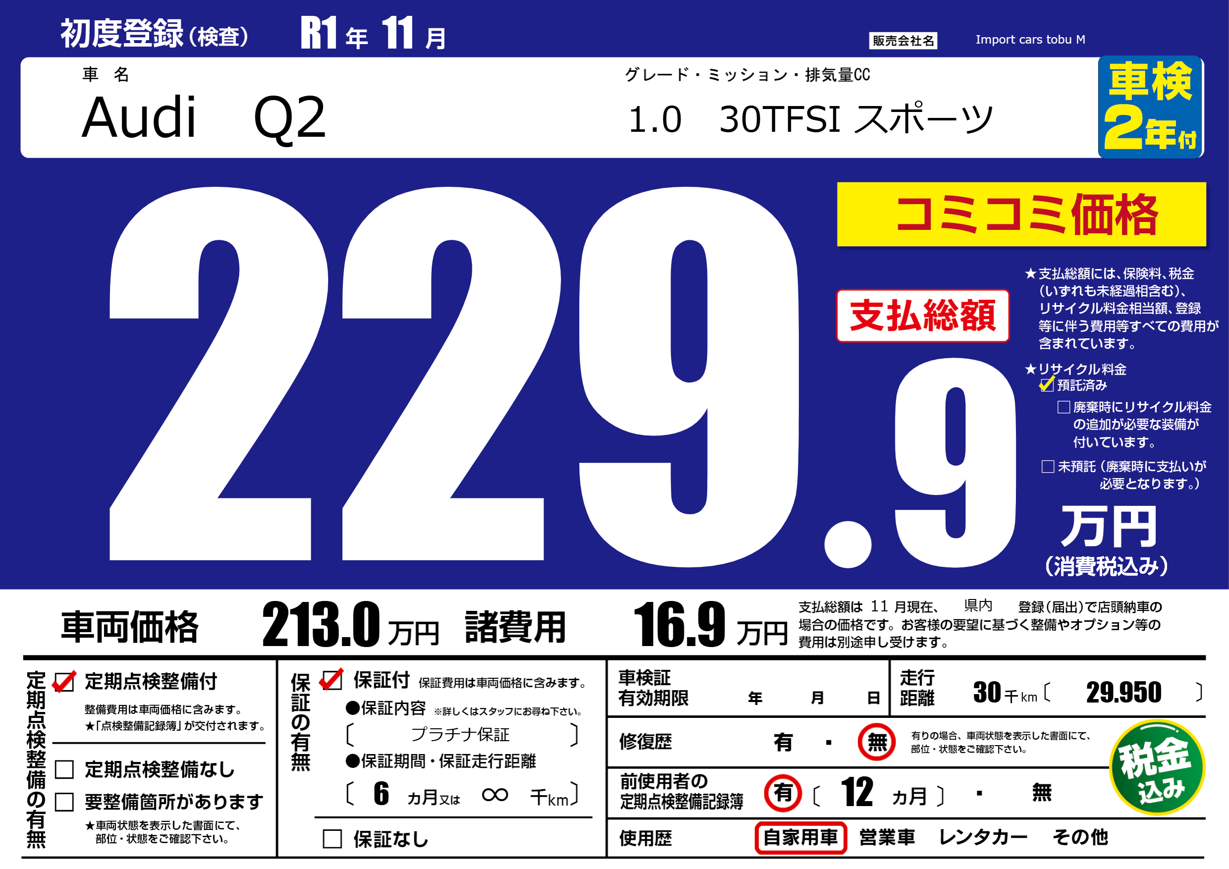 | 走行キロ | 3万km | ||