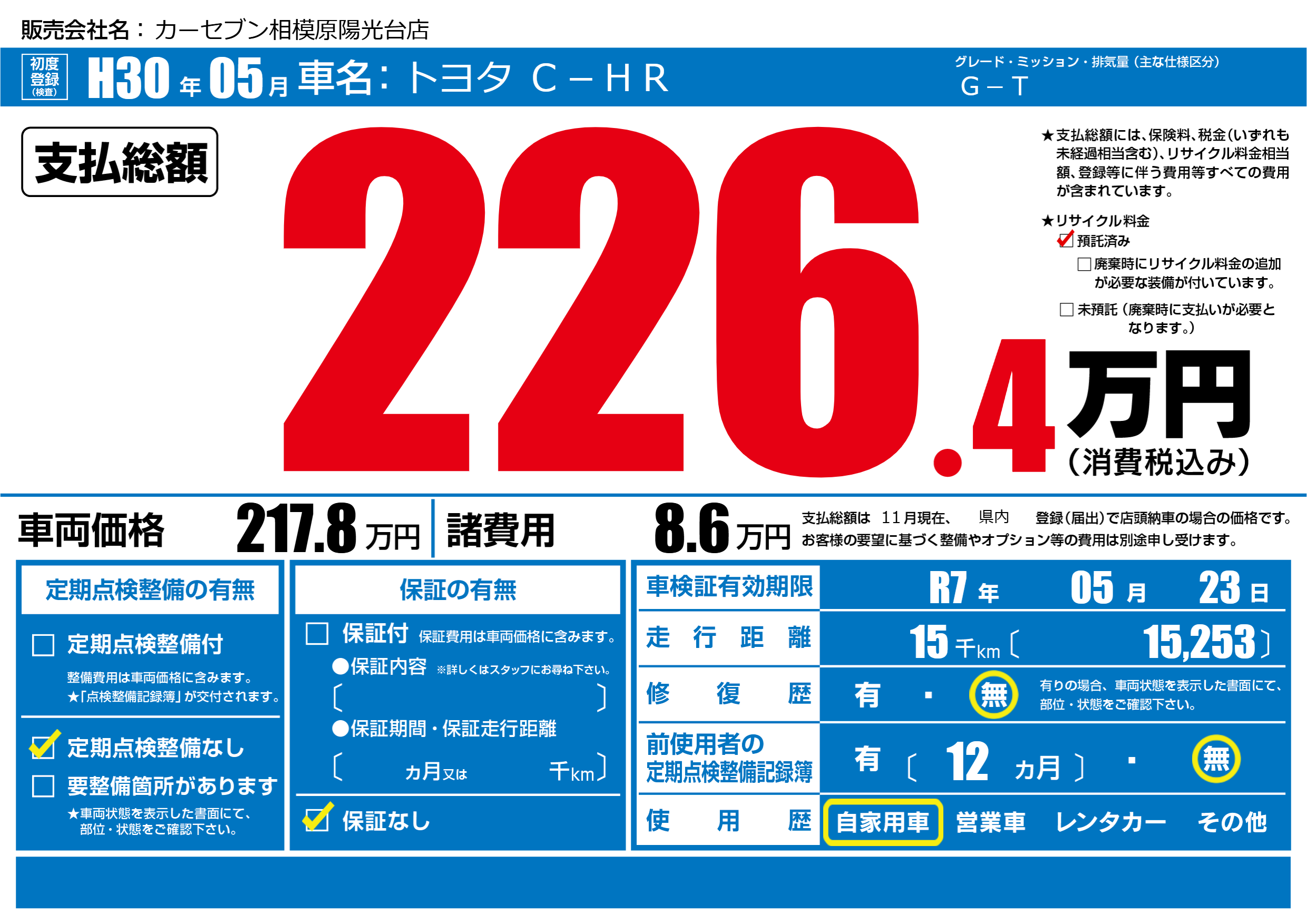 | 車検制限 | R7年 05月 23日 | ||