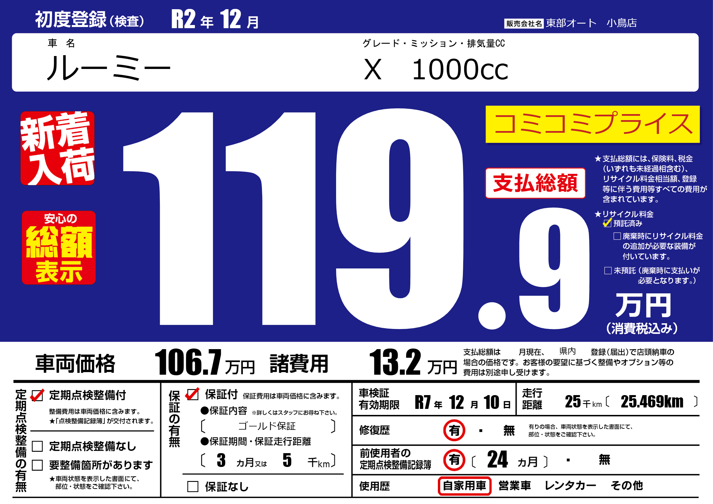 なし | 車検制限 | R7年12月10月 |