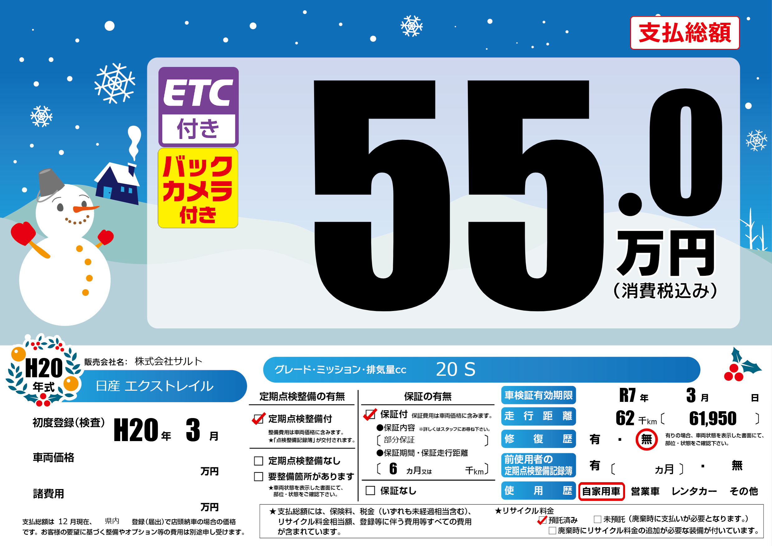 | 車名 | 日産 エクストレイル | グレード ミッション 排気量 |