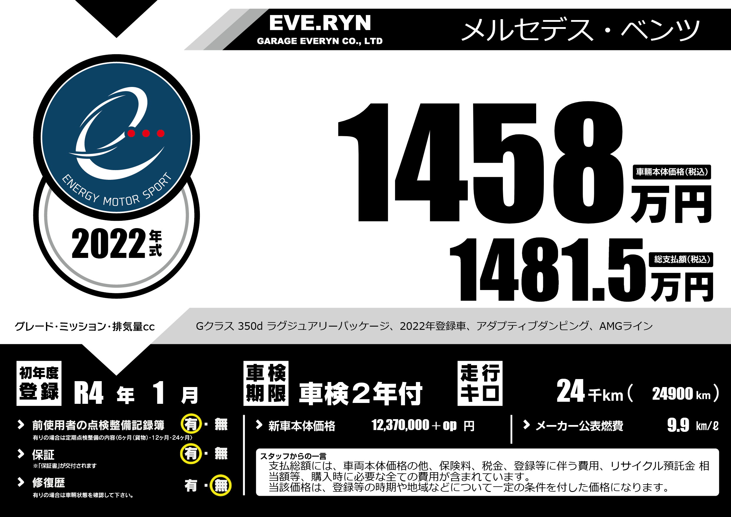 Gクラス 350d ラグジュアリーパッケージ、2022年登録車、アダプティブダンピング、AMGライン |