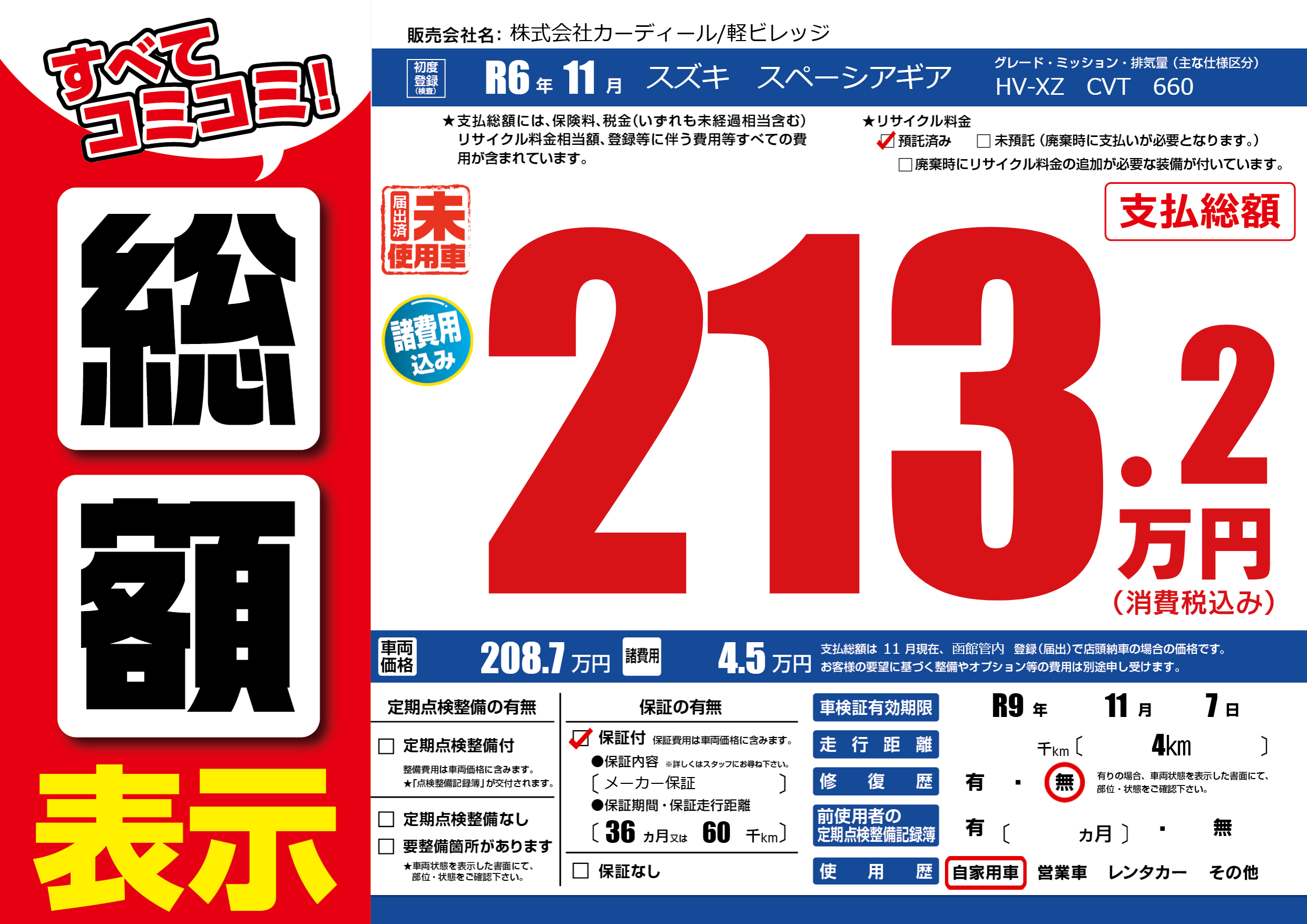 | 走行キロ | - | 初年度登録 | R6年11月 |