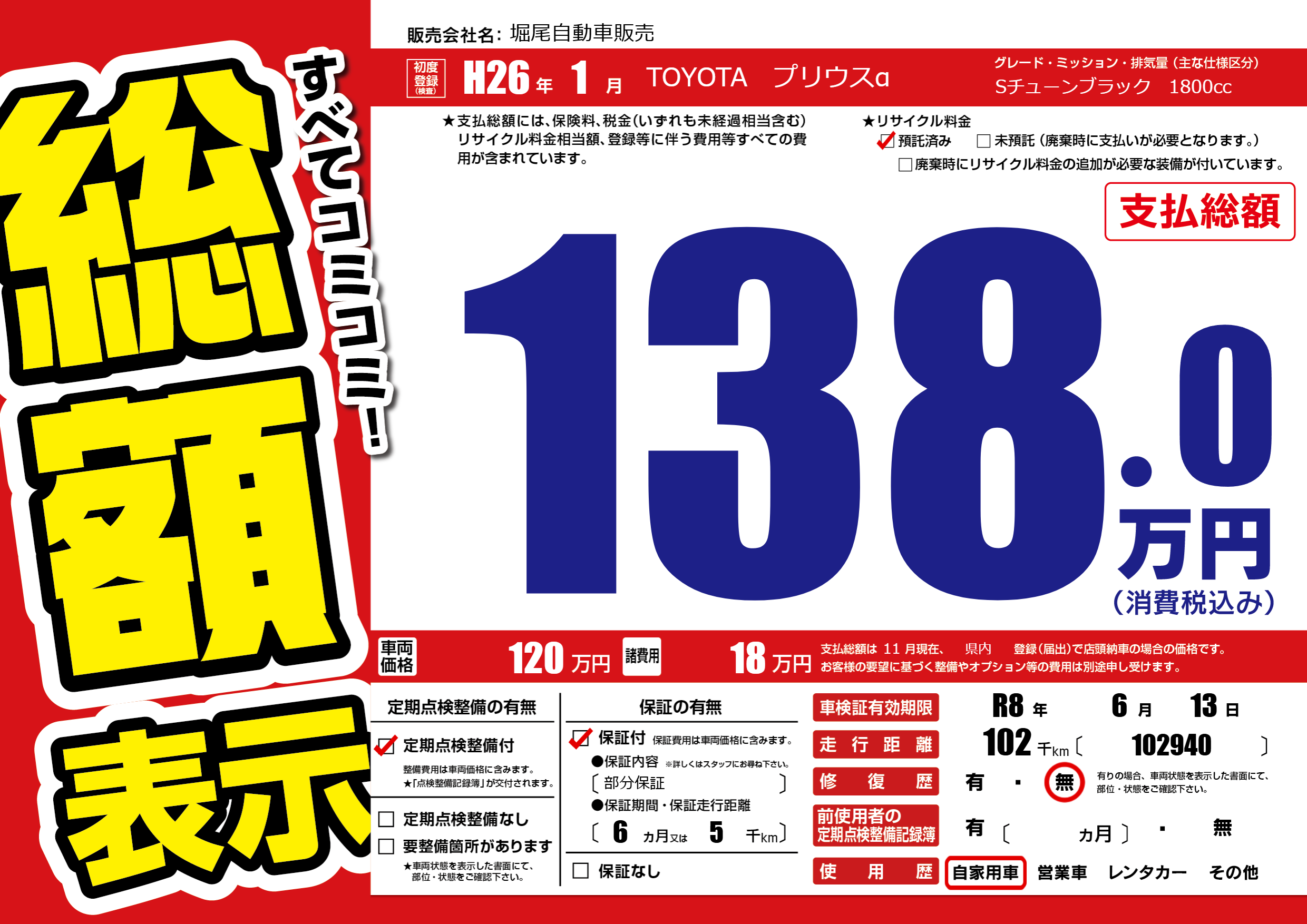 | 車検制限 | R8年 6月 13日 | ||