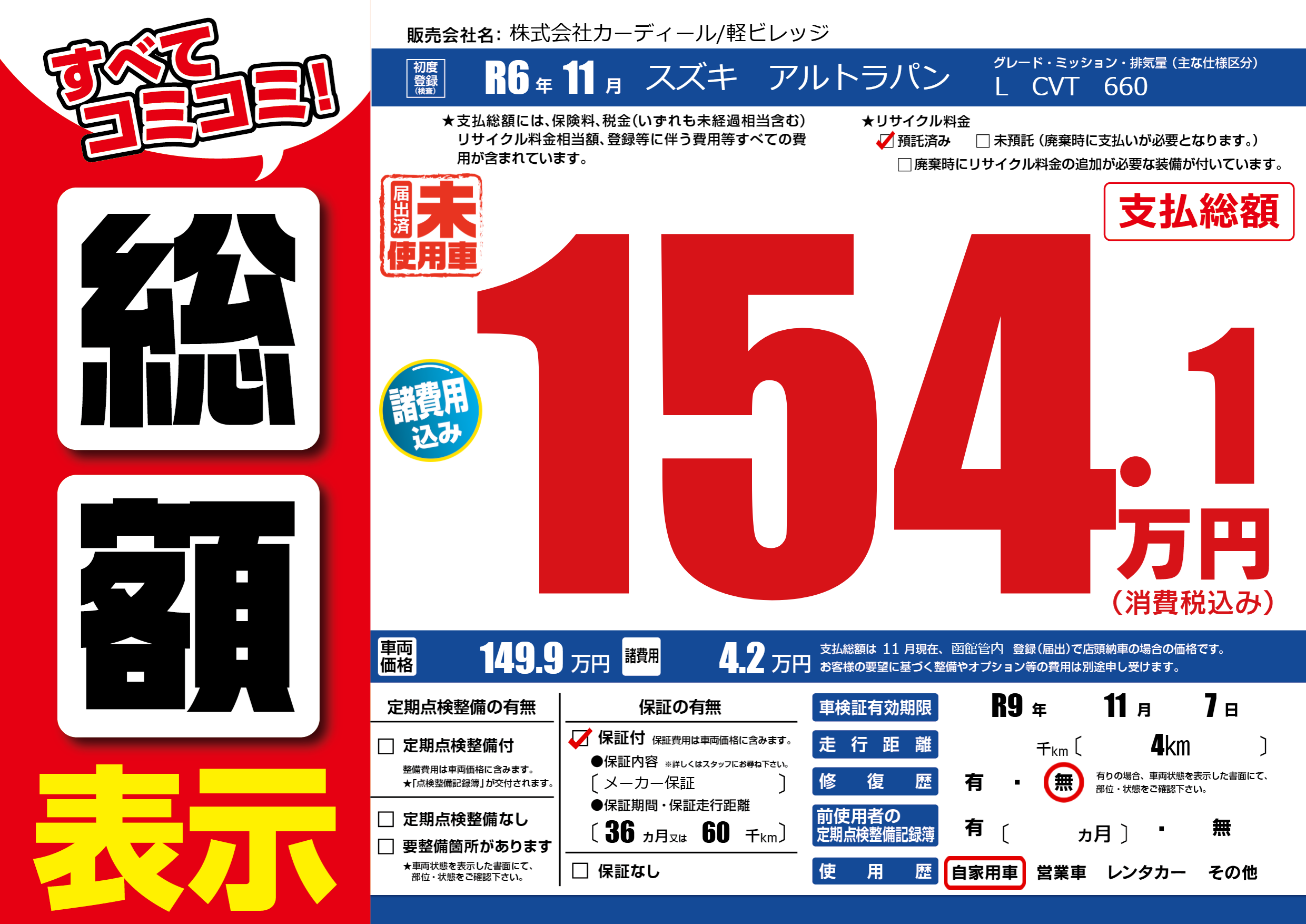 なし | 車検制限 | R9年11月7月 |