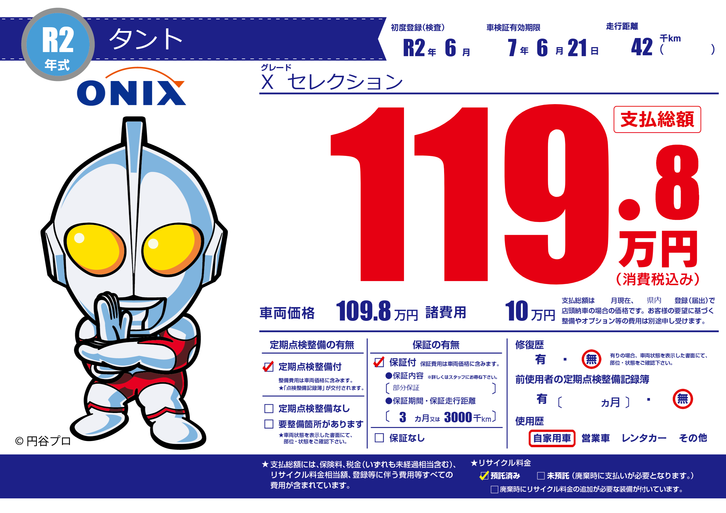 | 走行キロ | 4.2万km | 初年度登録 | R2年6月 |