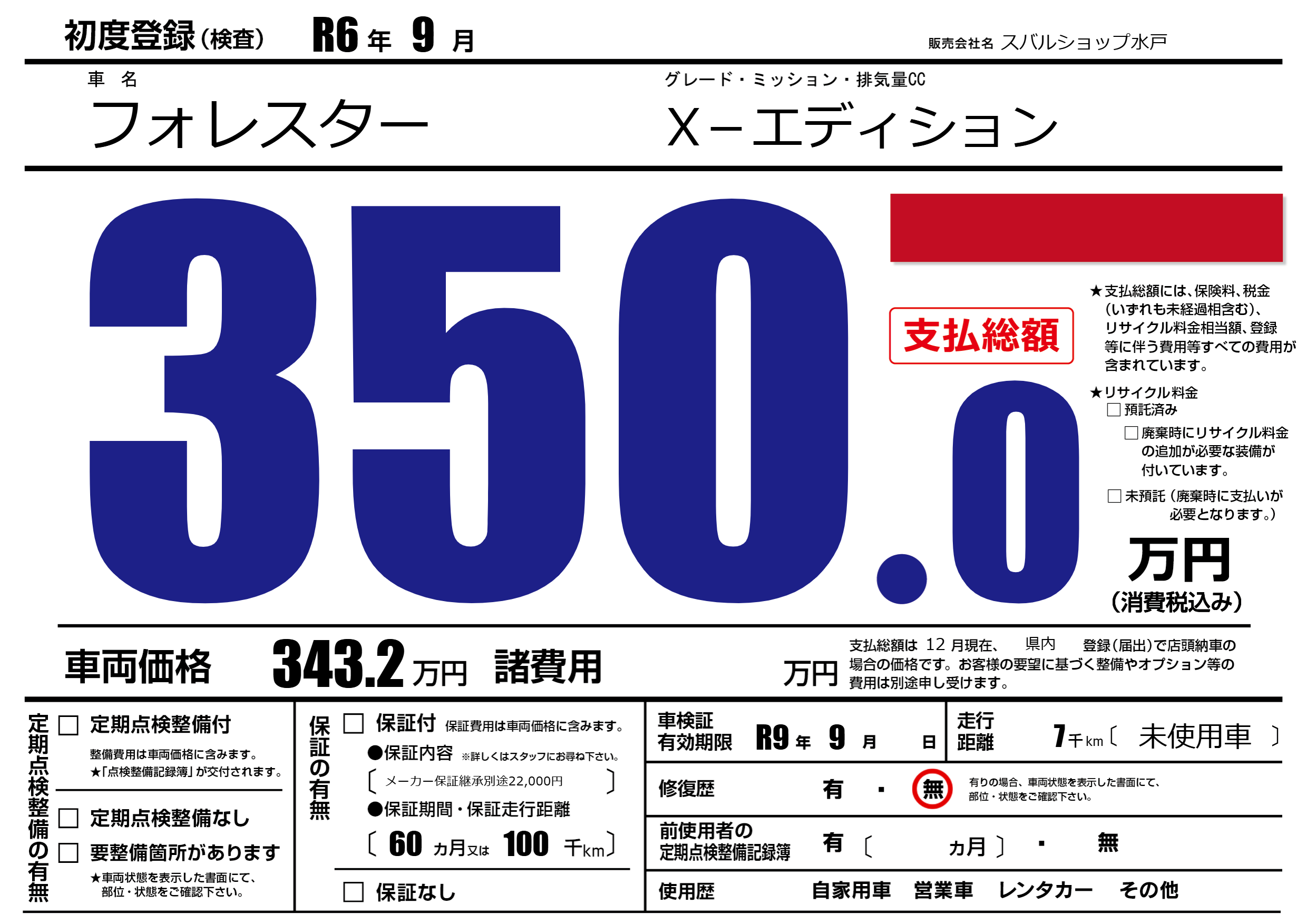 なし | 車検制限 | R9年9月---月 |