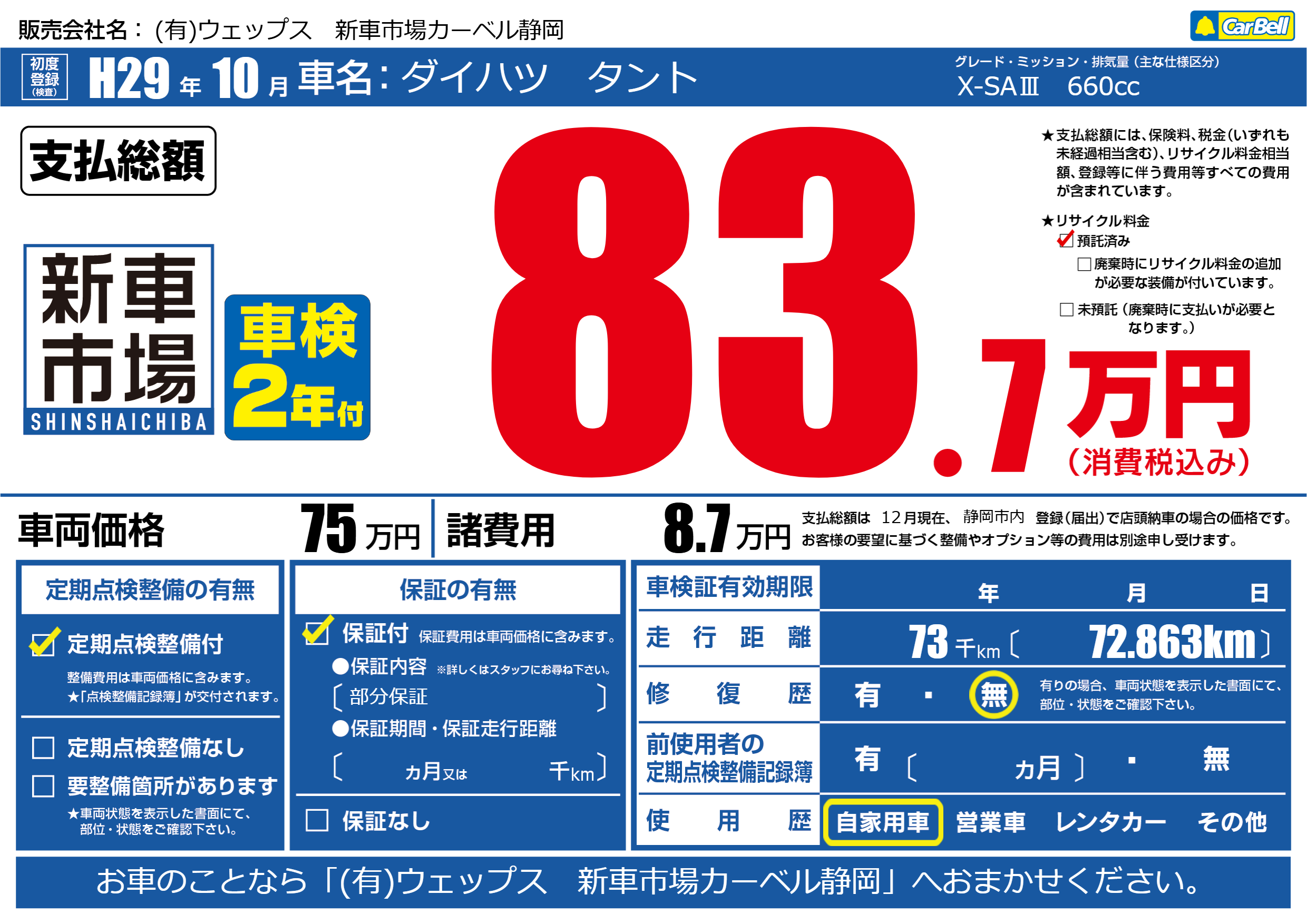 | 定期点検整備 | 定期点検整備あり | ||