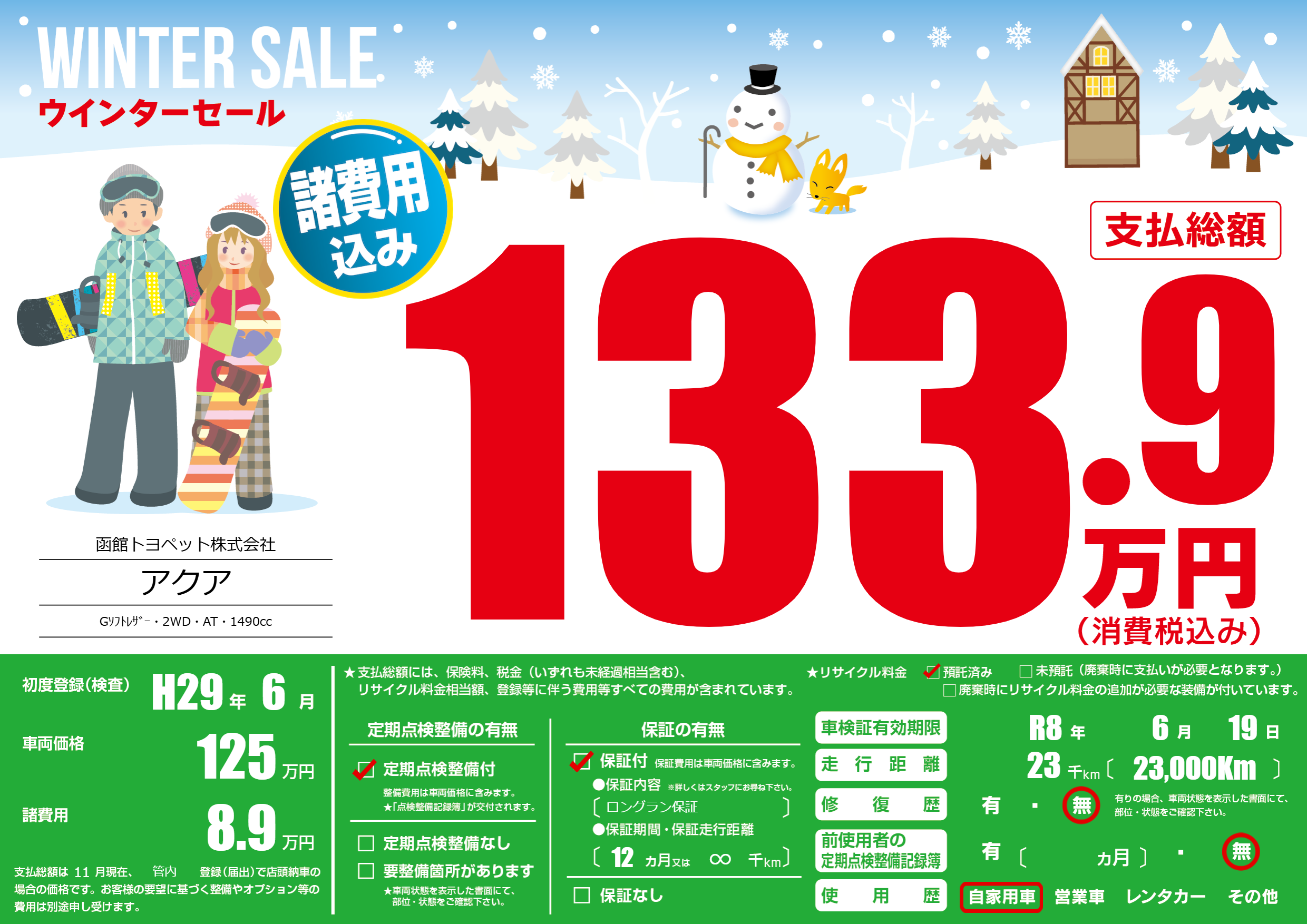 | 走行キロ | 2.3万km | 初年度登録 | H29年6月 |