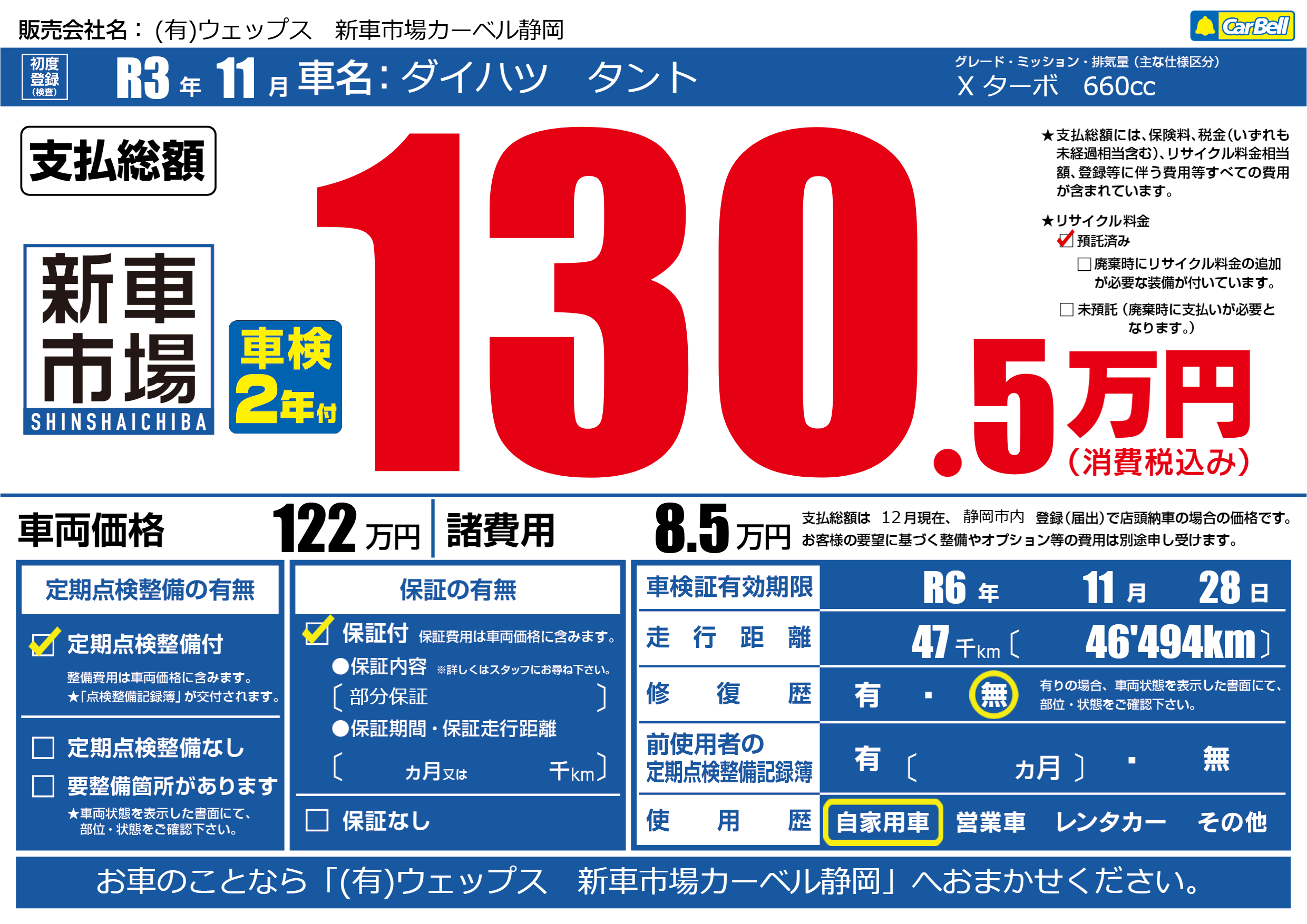 | 車検制限 | R6年 11月 28日 | ||