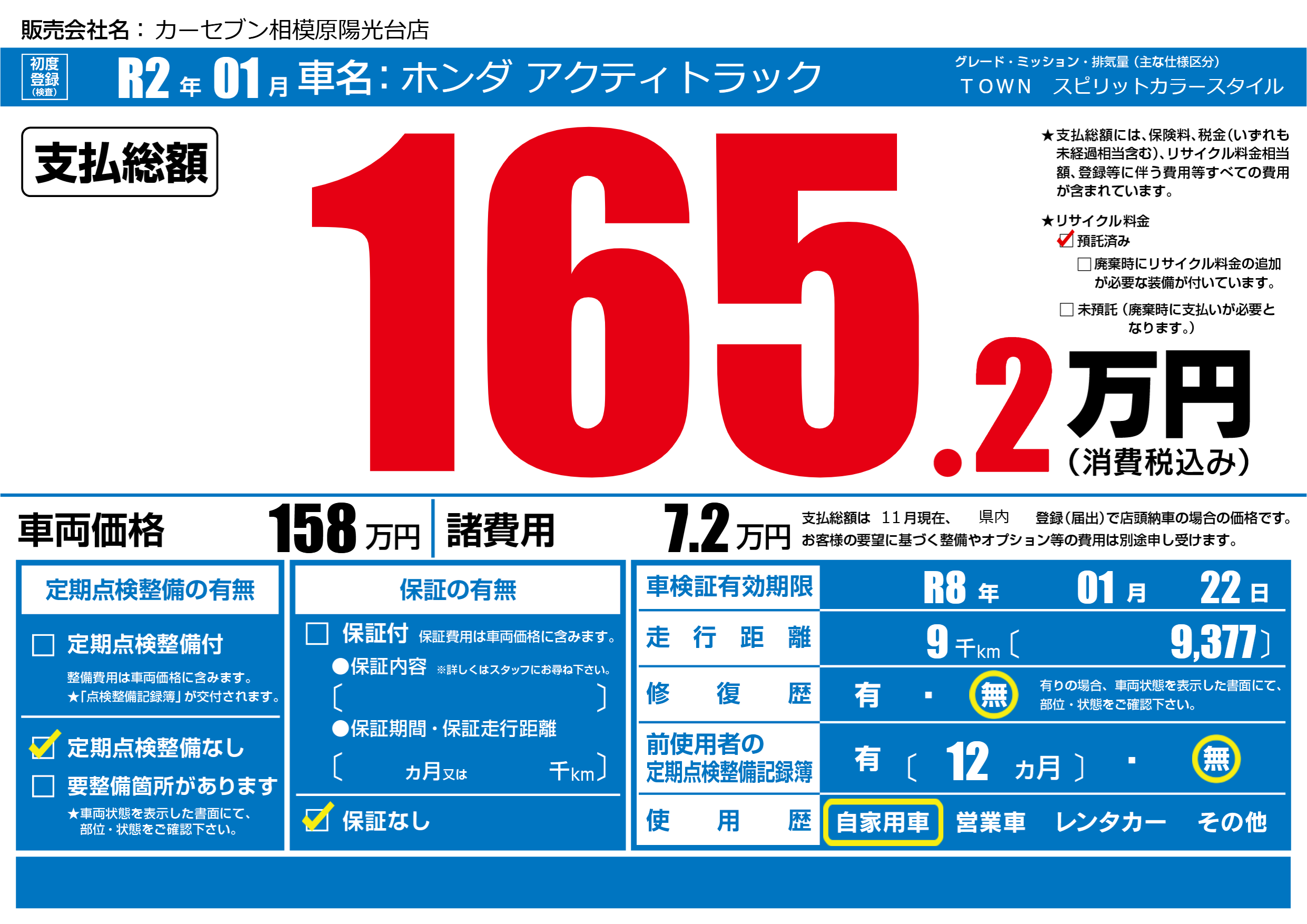 なし | 車検制限 | R8年01月22月 |