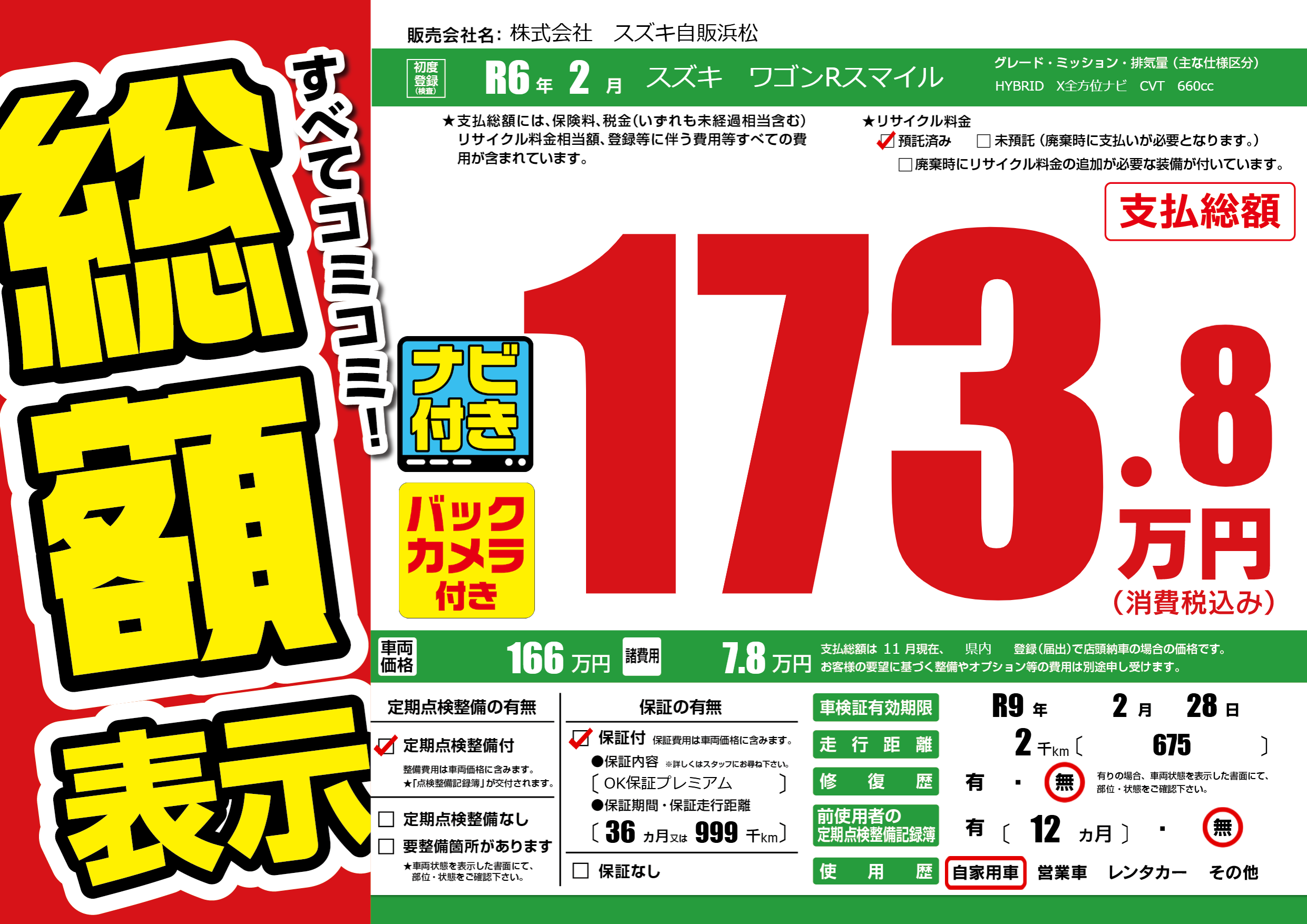 | 車名 | スズキ ワゴンRスマイル | グレード ミッション 排気量 |
