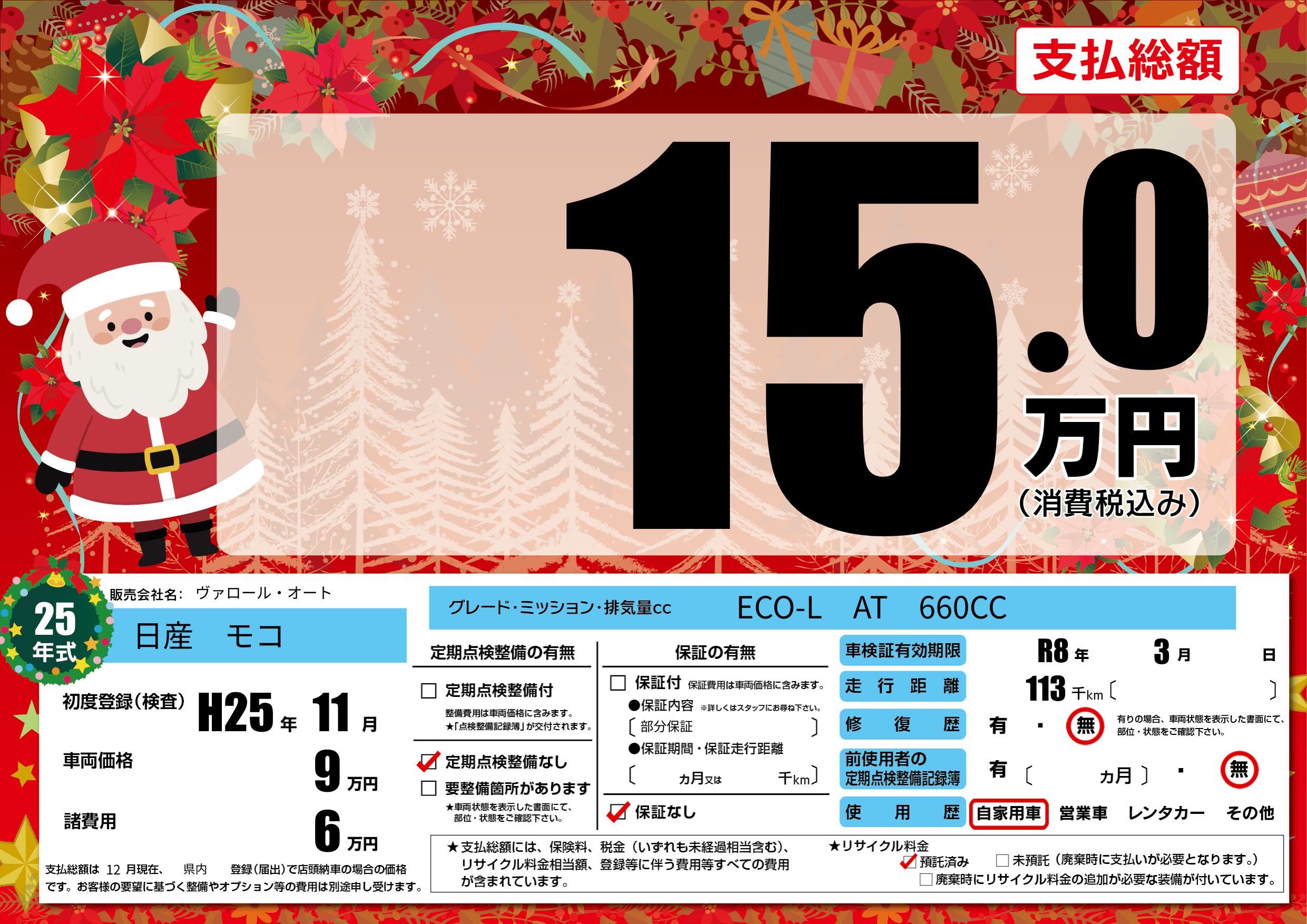 | 走行キロ | 11.3万km | 初年度登録 | H25年11月 |