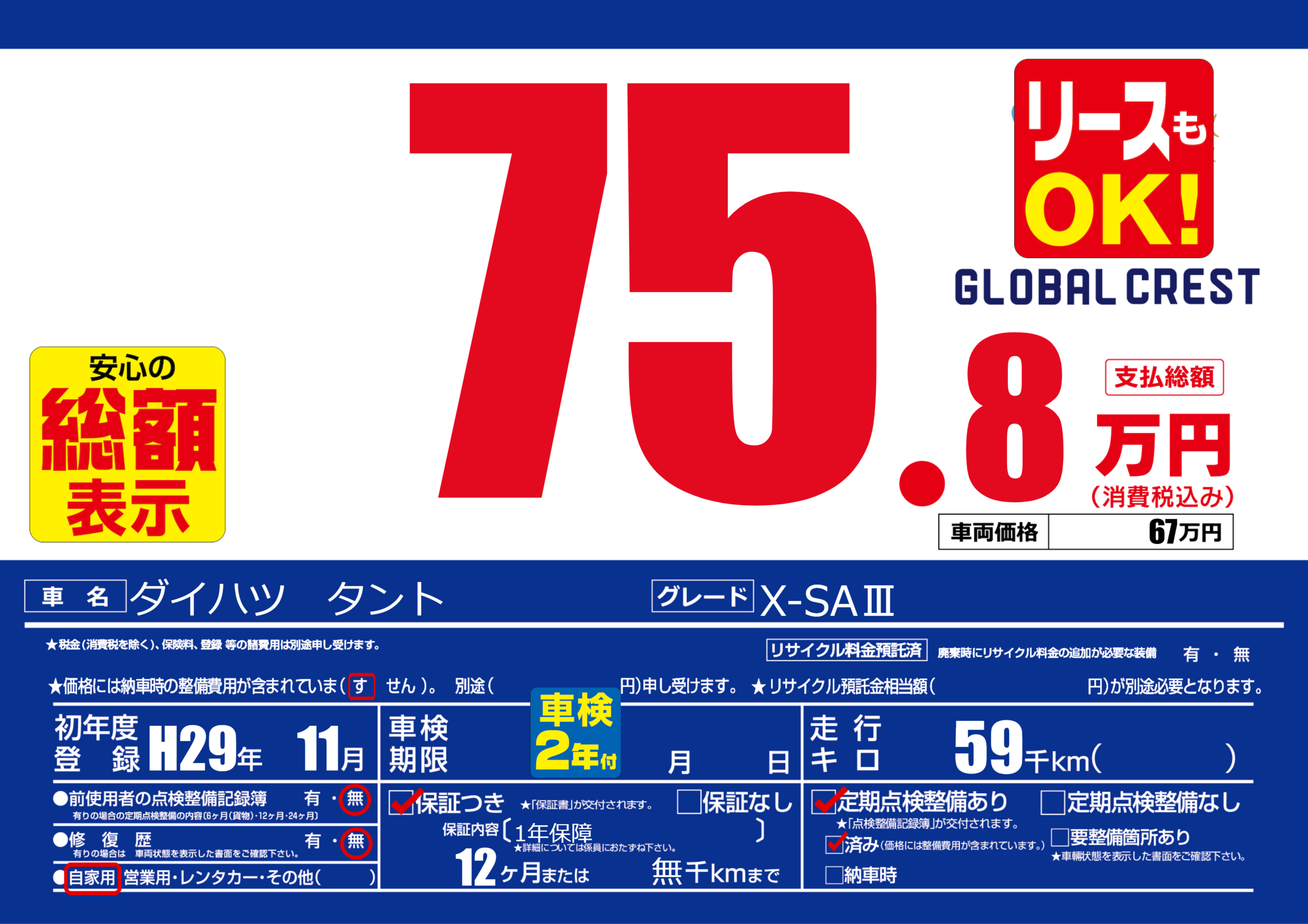 | 定期点検整備 | 定期点検整備あり 定期点検整備済み | ||
