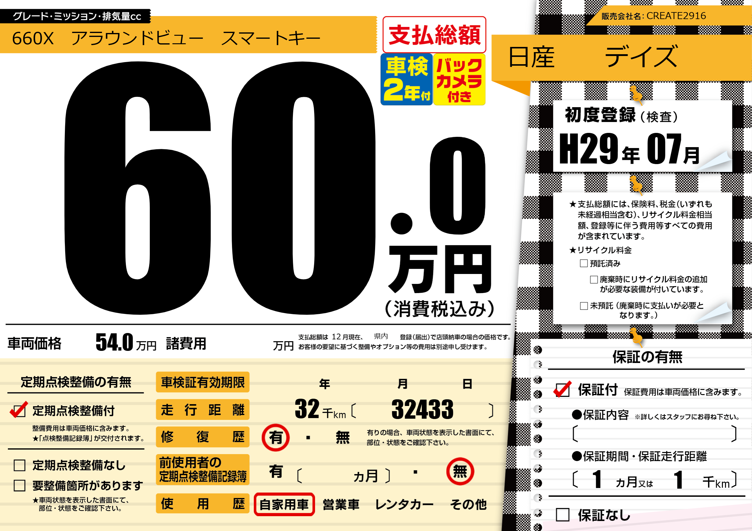 | 定期点検整備 | 定期点検整備あり | ||