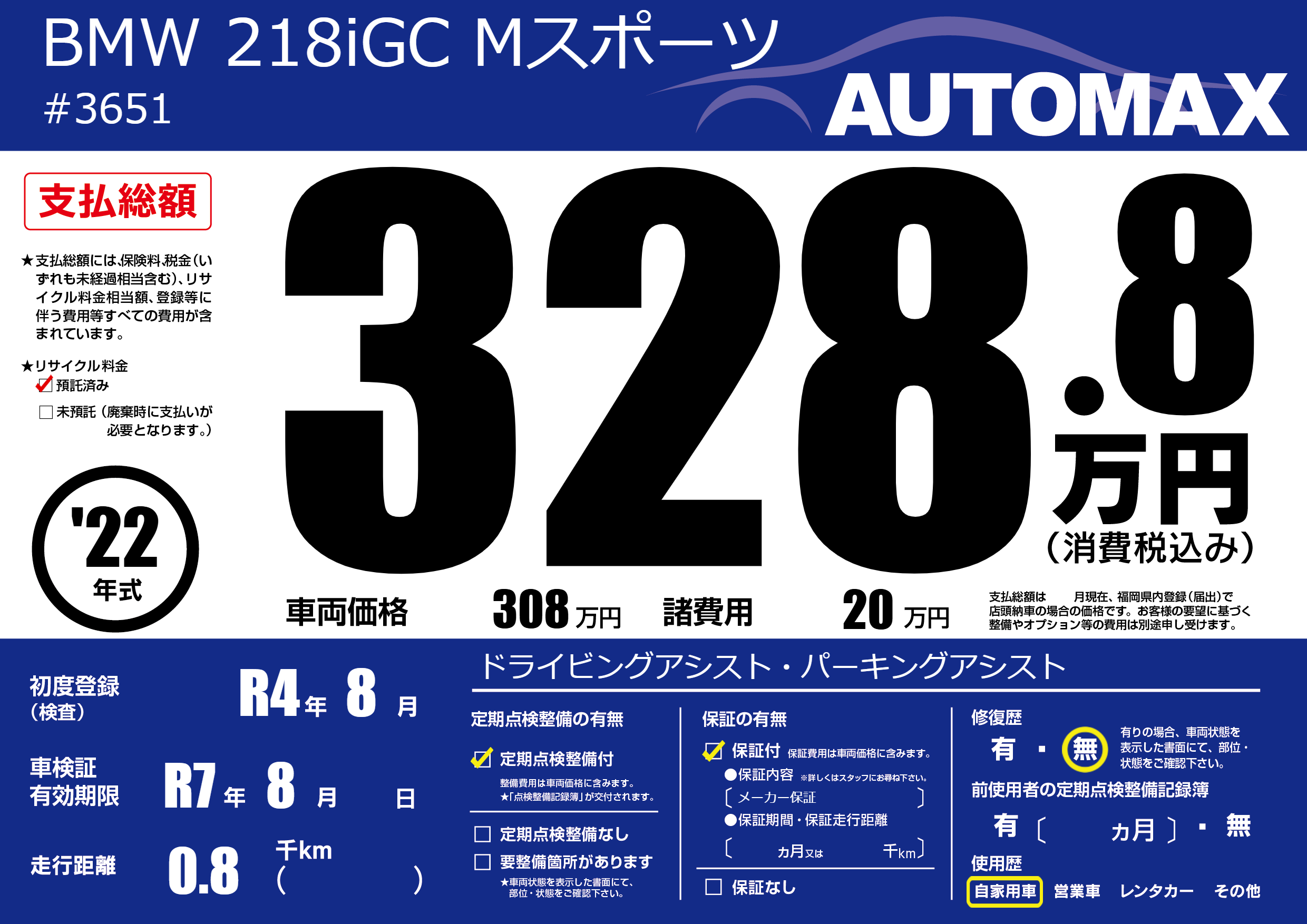 | 初年度登録 | R4年8月 | ||