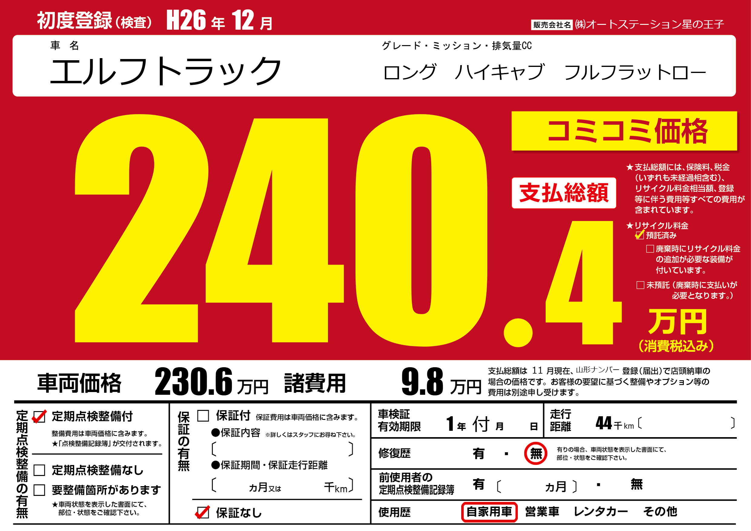 | 車名 | エルフトラック | グレード ミッション 排気量 |