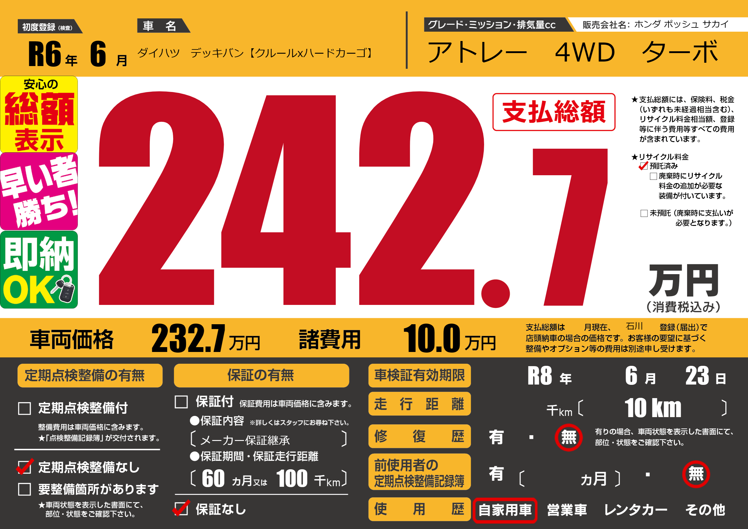 | 走行キロ | - | 初年度登録 | R6年6月 |