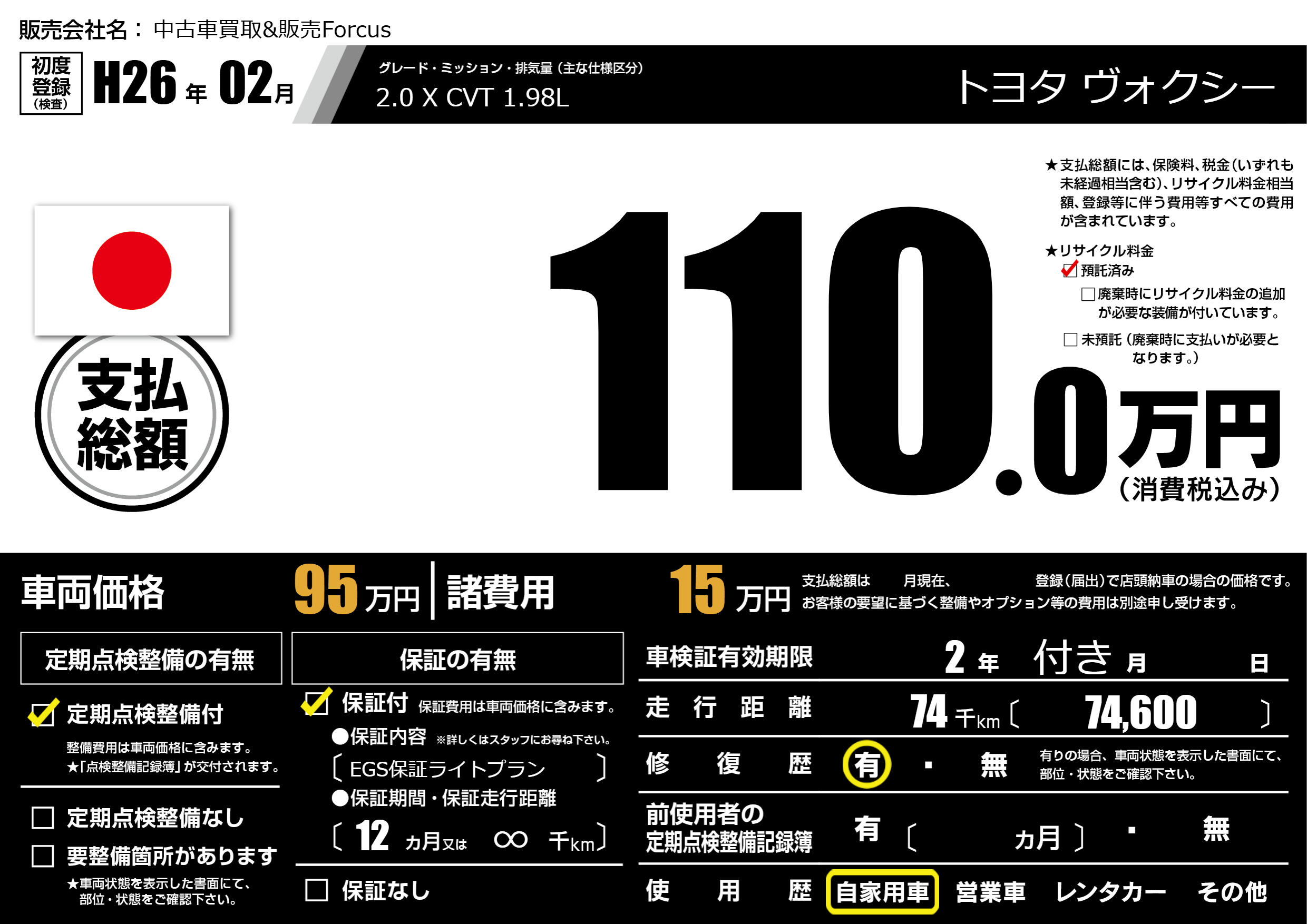 | 走行キロ | 7.4万km | 初年度登録 | H26年02月 |