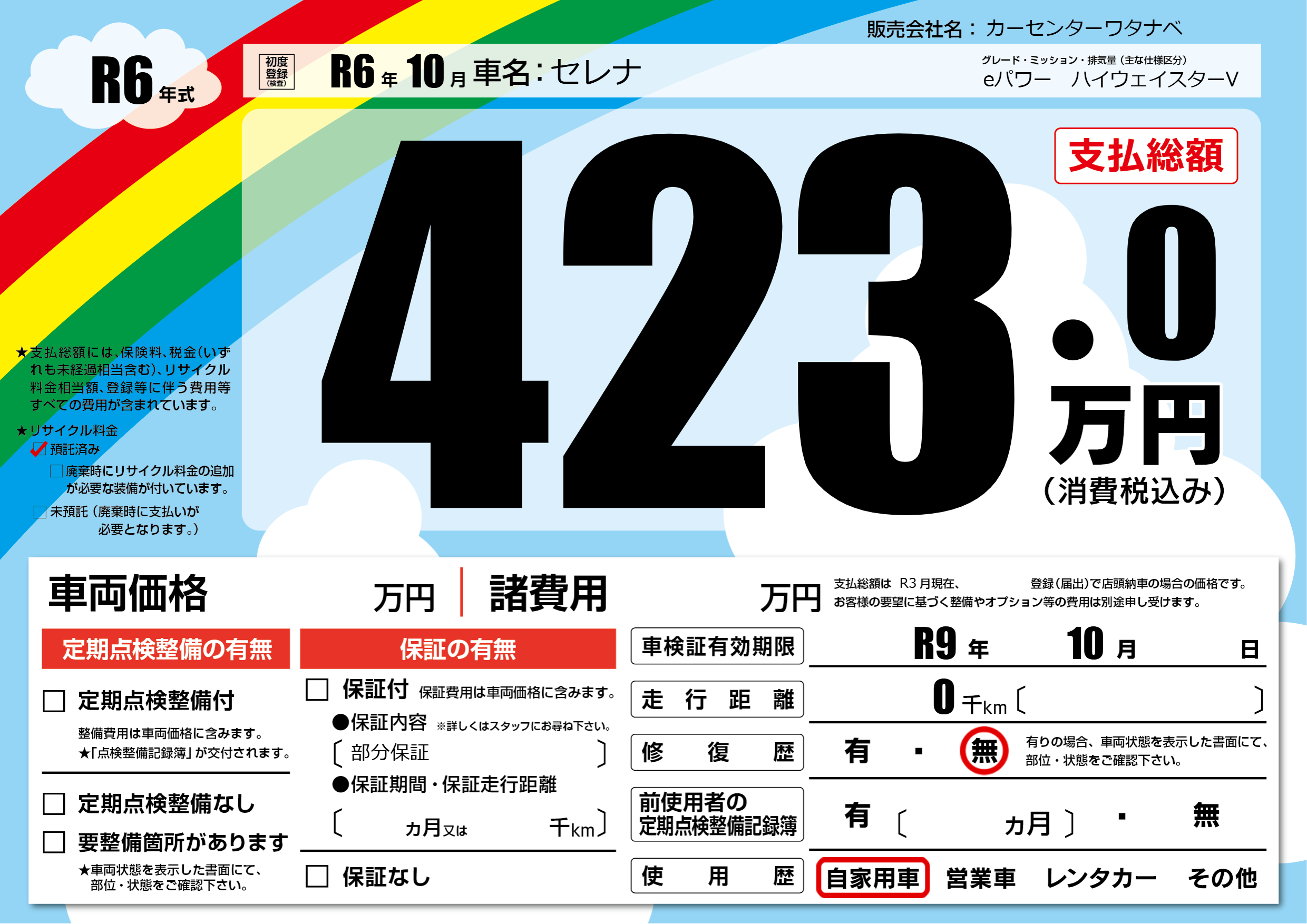 | 車名 | セレナ | グレード ミッション 排気量 |