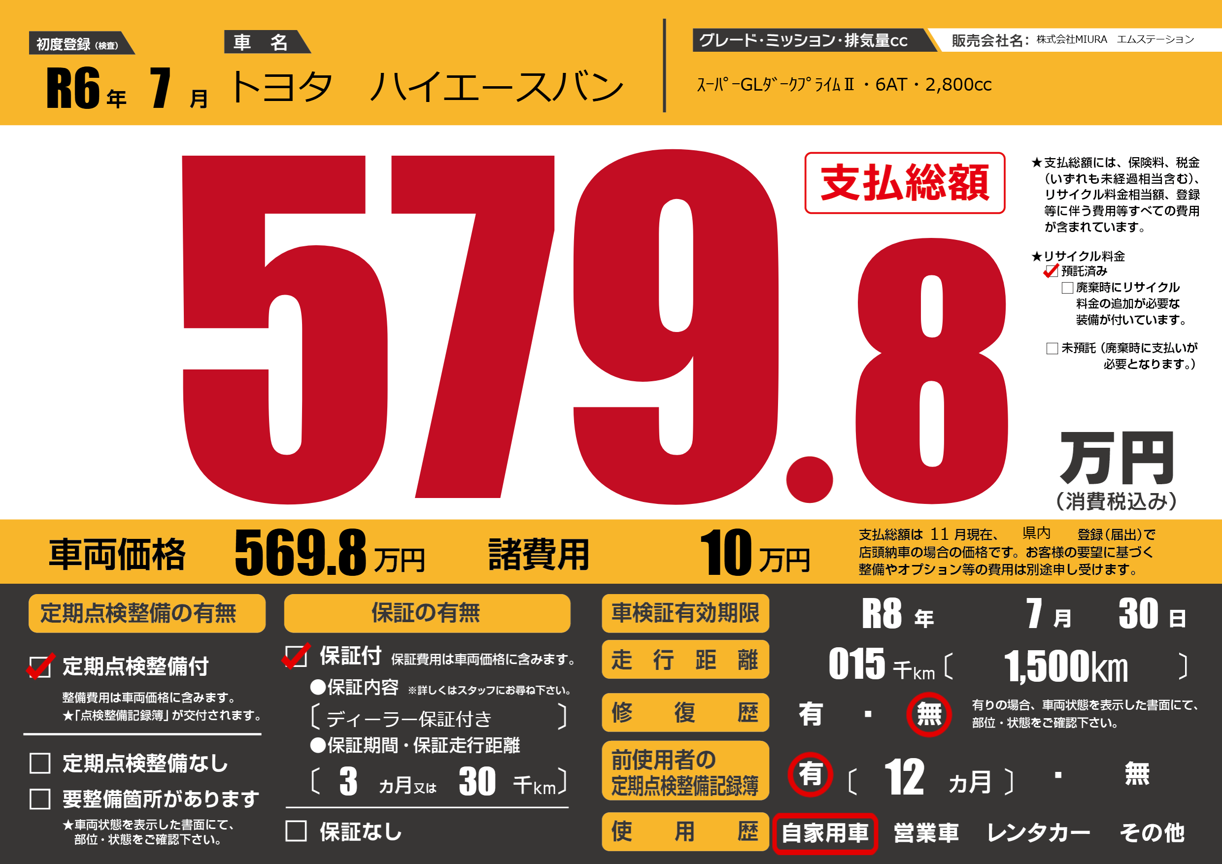 なし | 車検制限 | R8年7月30月 |