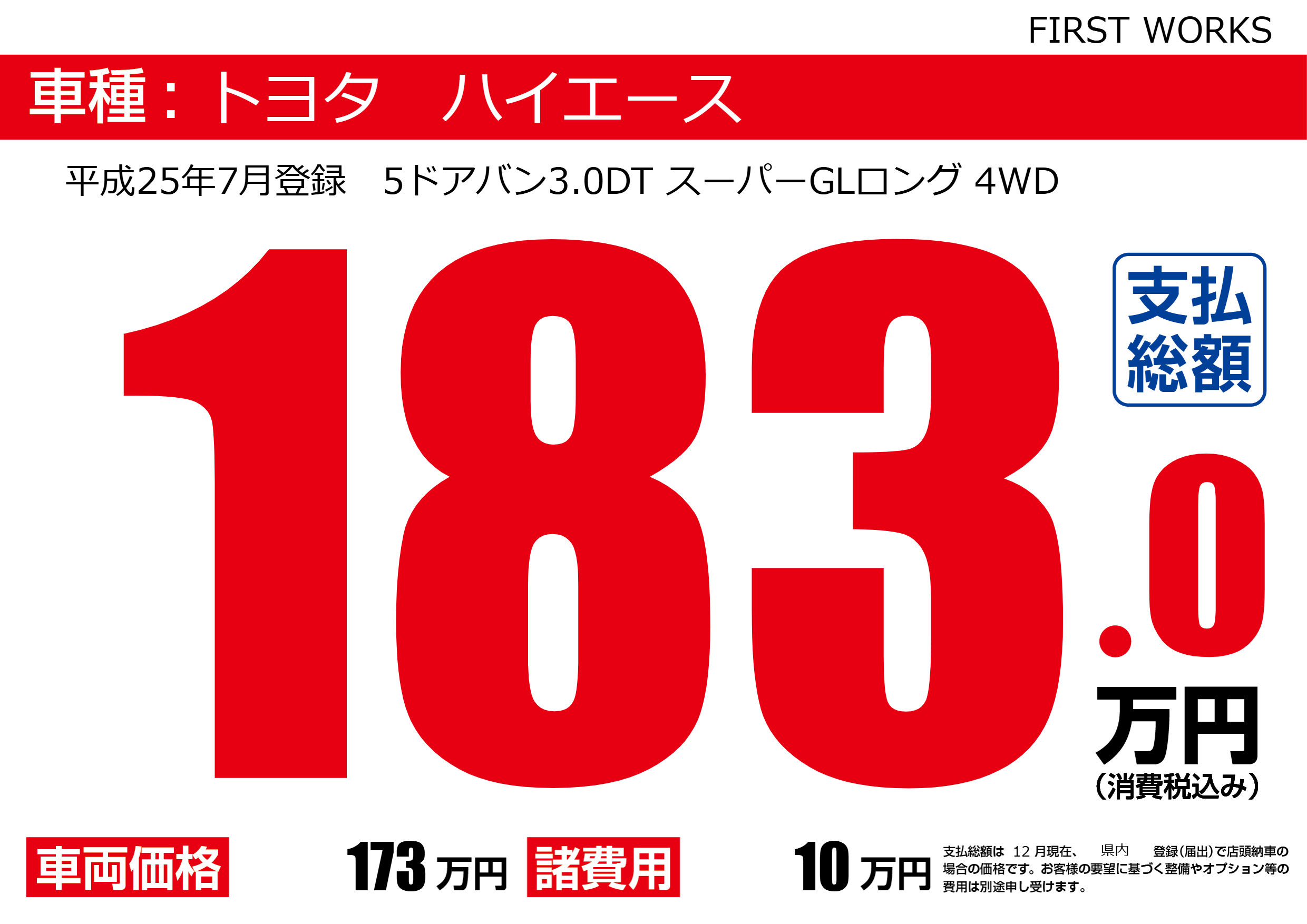 平成25年7月登録 5ドアバン3.0DT スーパーGLロング 4WD |