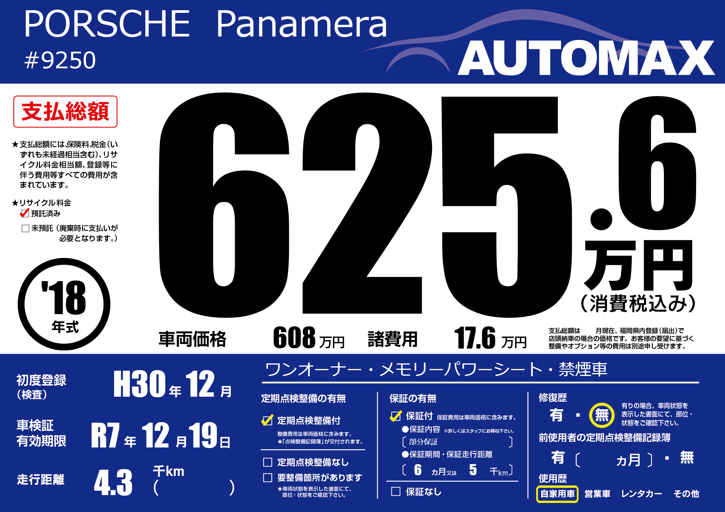 | 車名 | PORSCHE Panamera | グレード ミッション 排気量 |