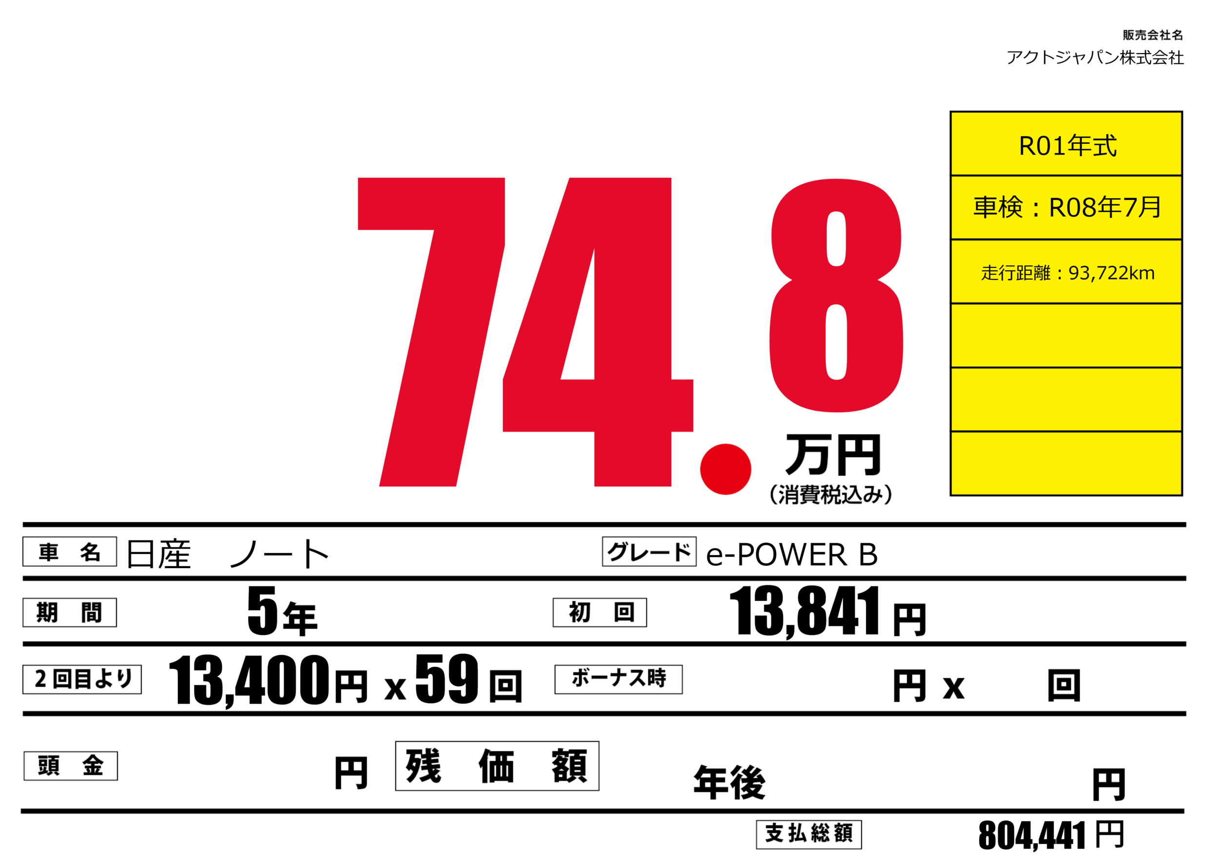 | 車検制限 | - 年 - 月 - 日 | ||