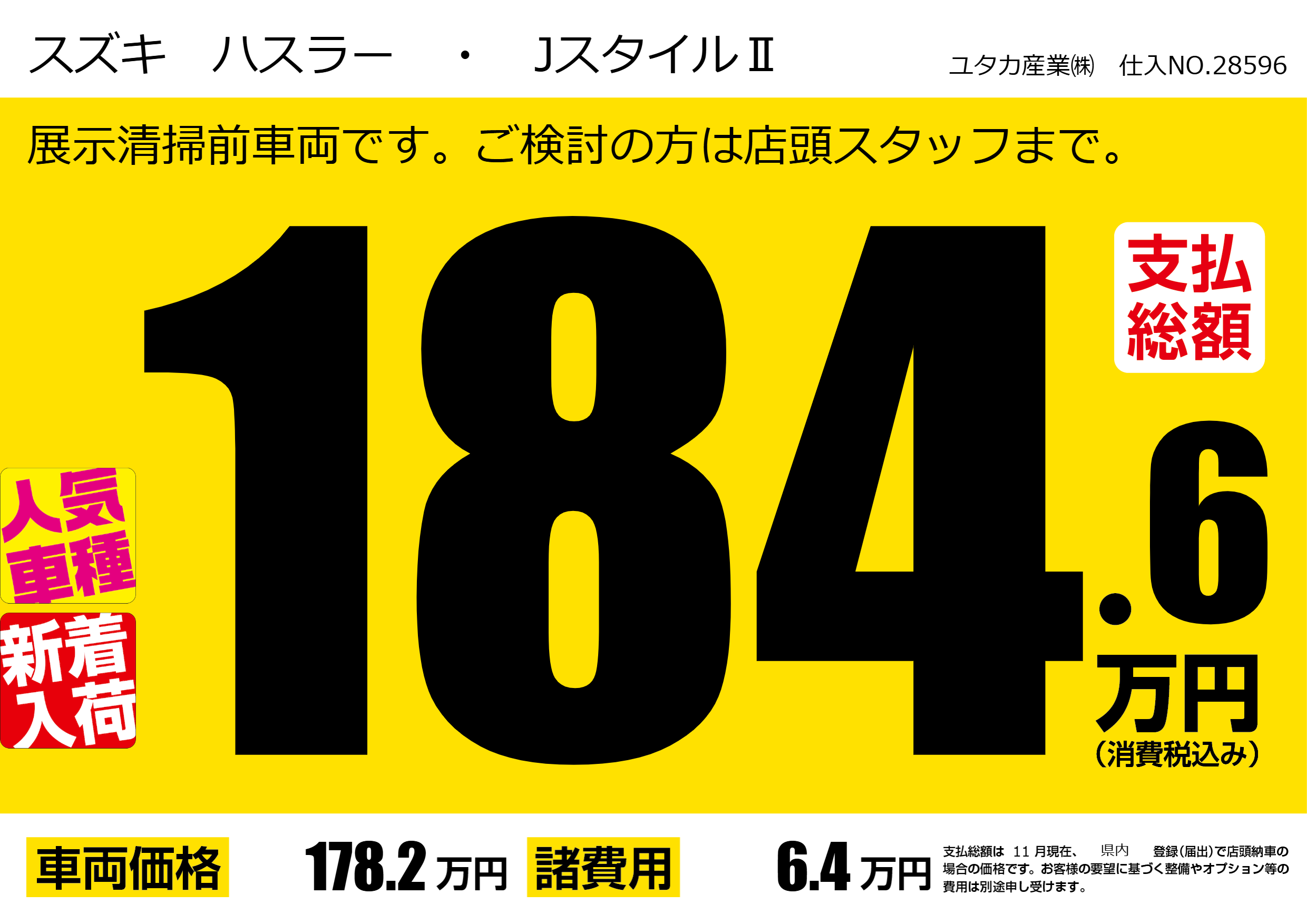 | 車名 | スズキ ハスラー ・ JスタイルⅡ | グレード ミッション 排気量 |