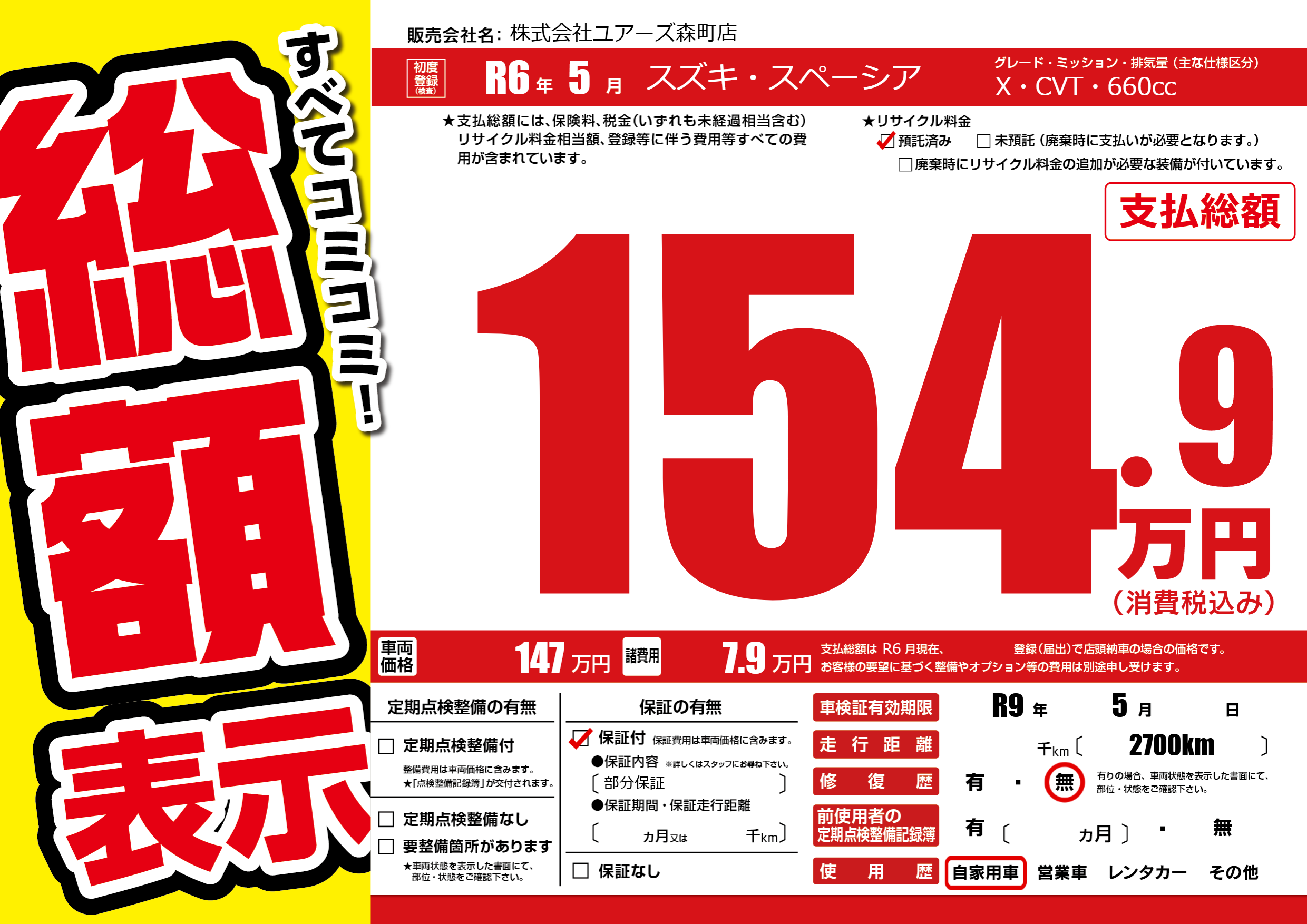 なし | 車検制限 | R9年5月---月 |