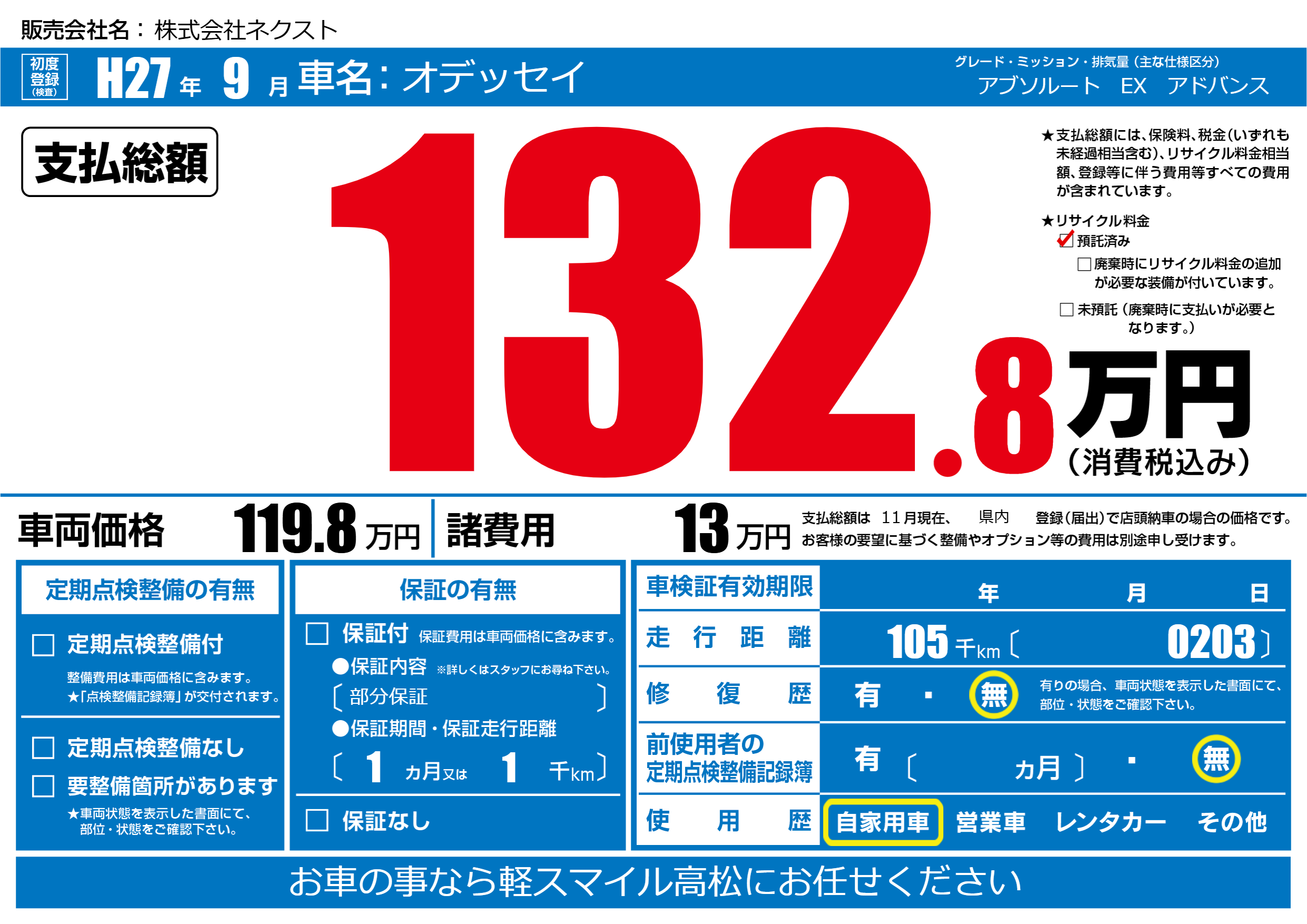 | 初年度登録 | H27年9月 | ||