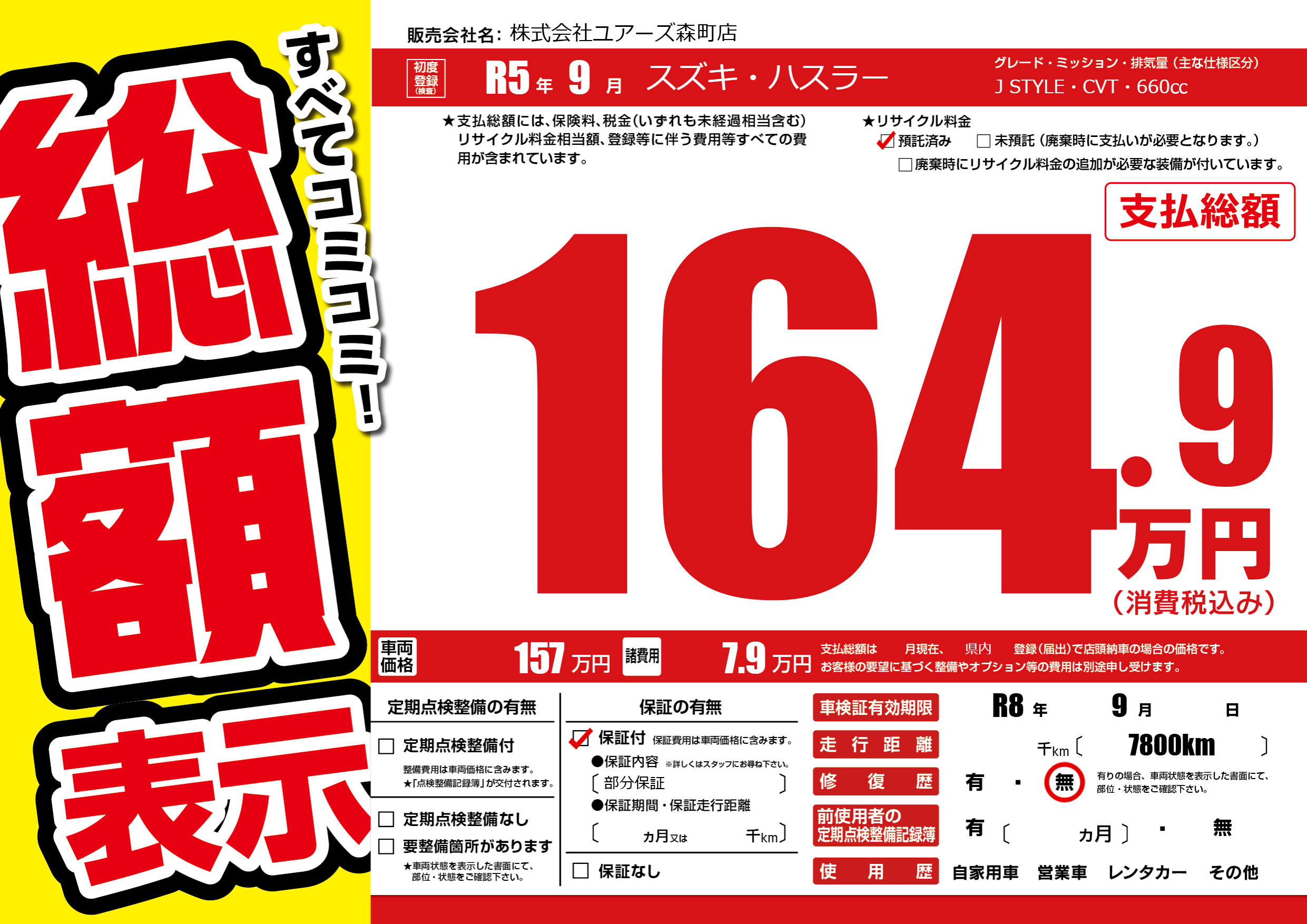 | 走行キロ | - | 初年度登録 | R5年9月 |