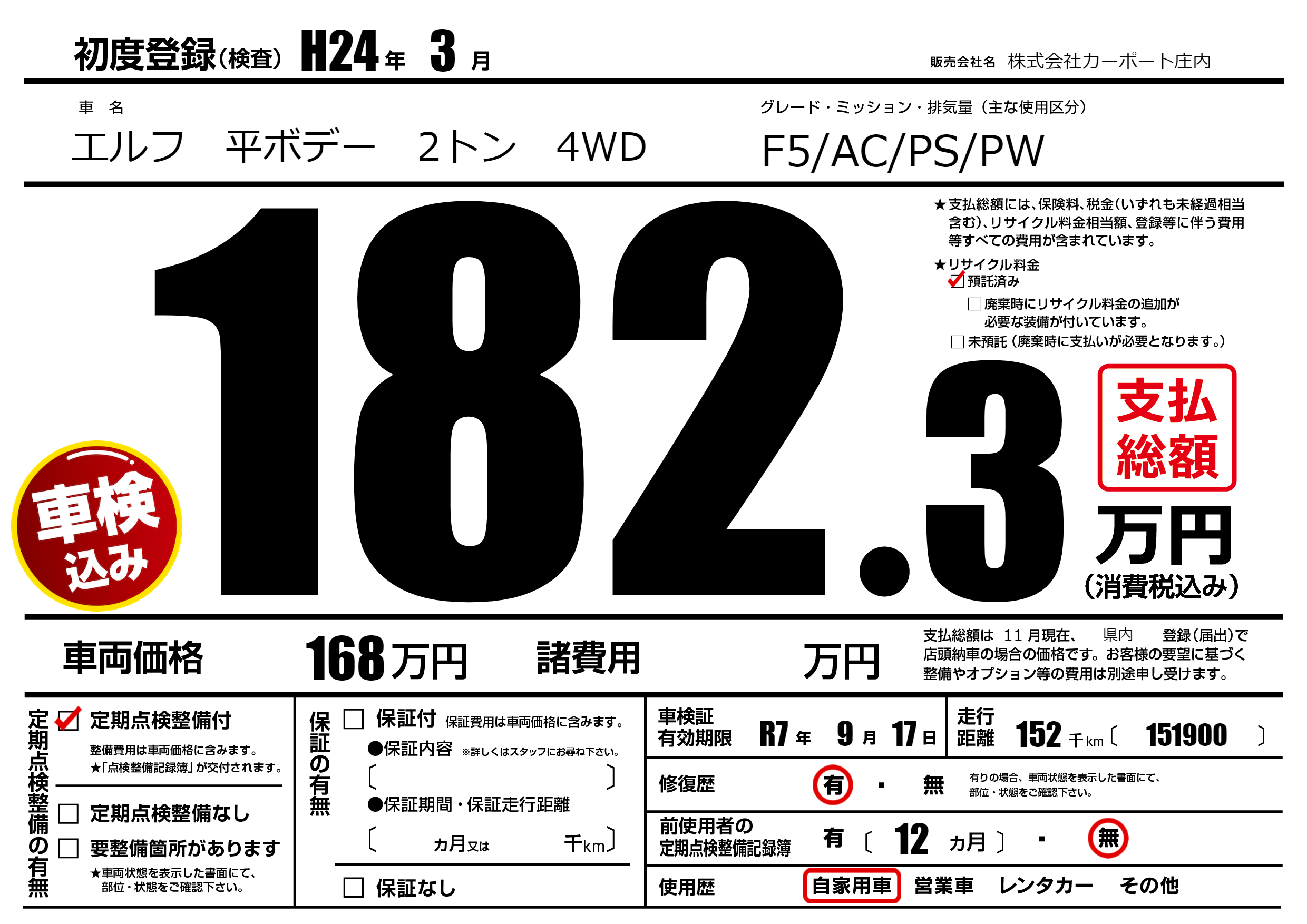 | 定期点検整備 | 定期点検整備あり | ||
