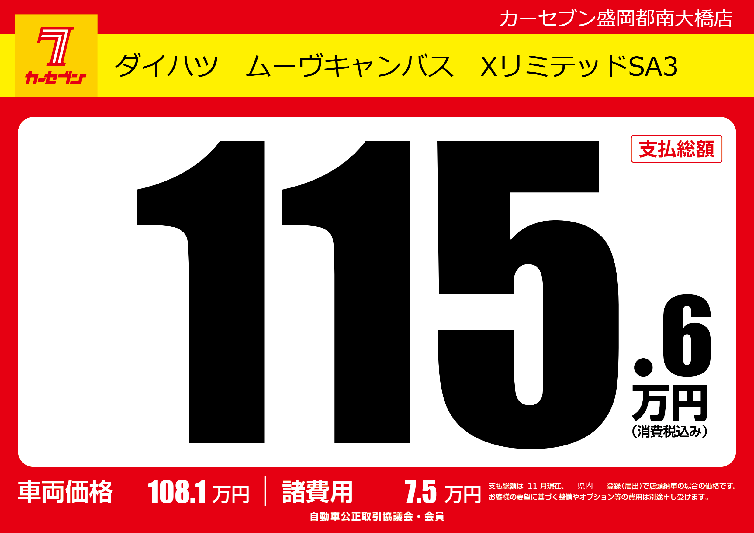 | 車名 | ダイハツ ムーヴキャンバス XリミテッドSA3 | グレード ミッション 排気量 |