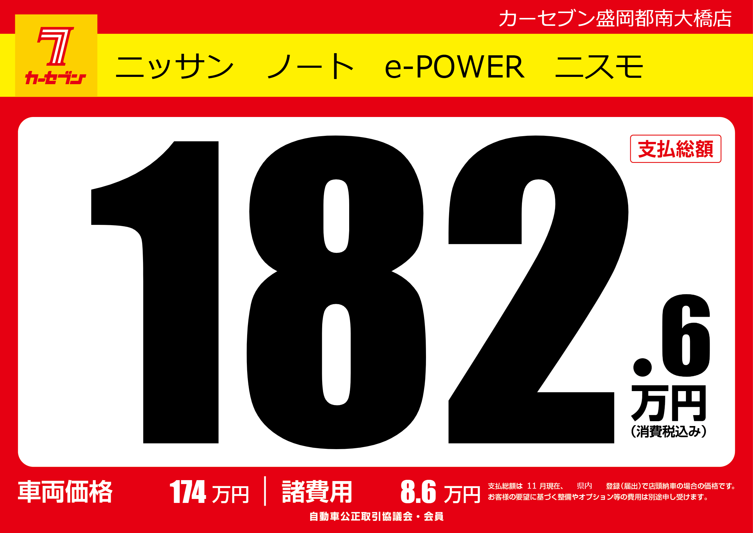 | 車名 | ニッサン ノート e-POWER ニスモ | グレード ミッション 排気量 |