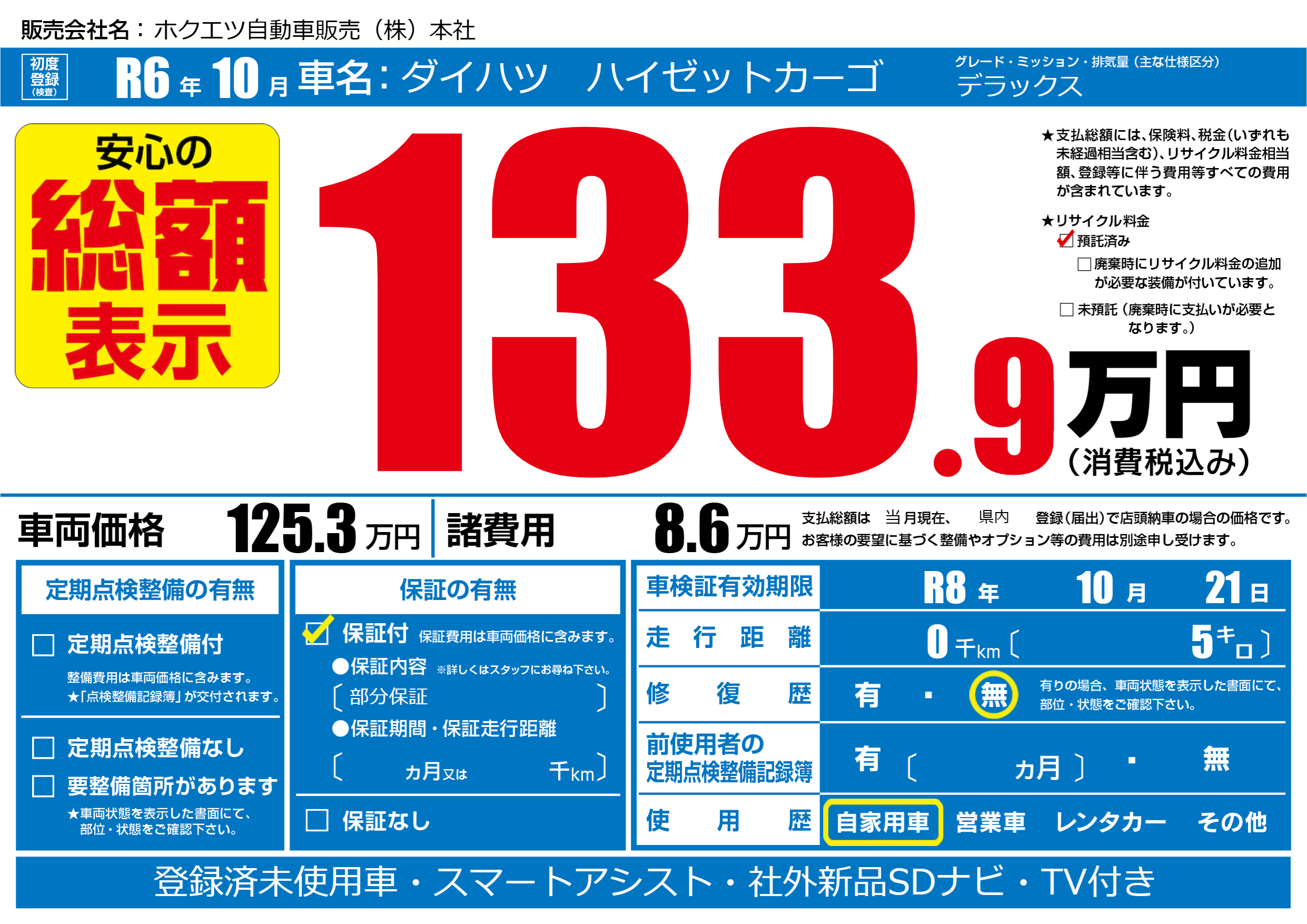 なし | 車検制限 | R8年10月21月 |