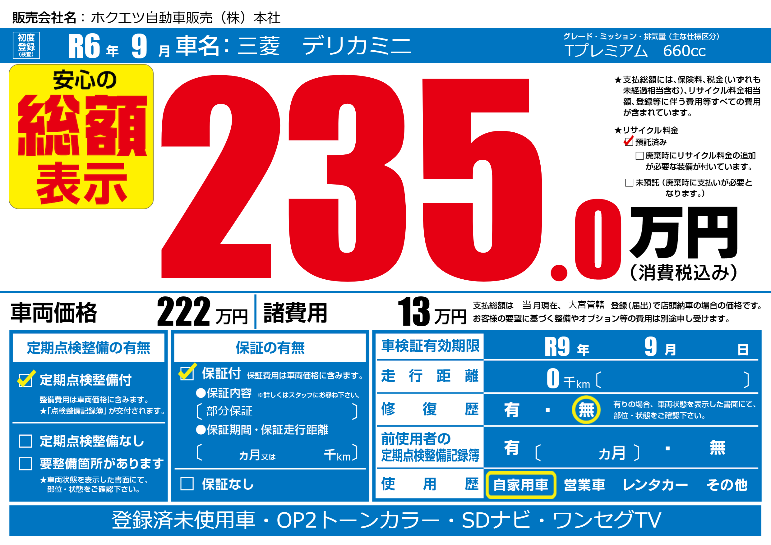 | 走行キロ | - | 初年度登録 | R6年9月 |
